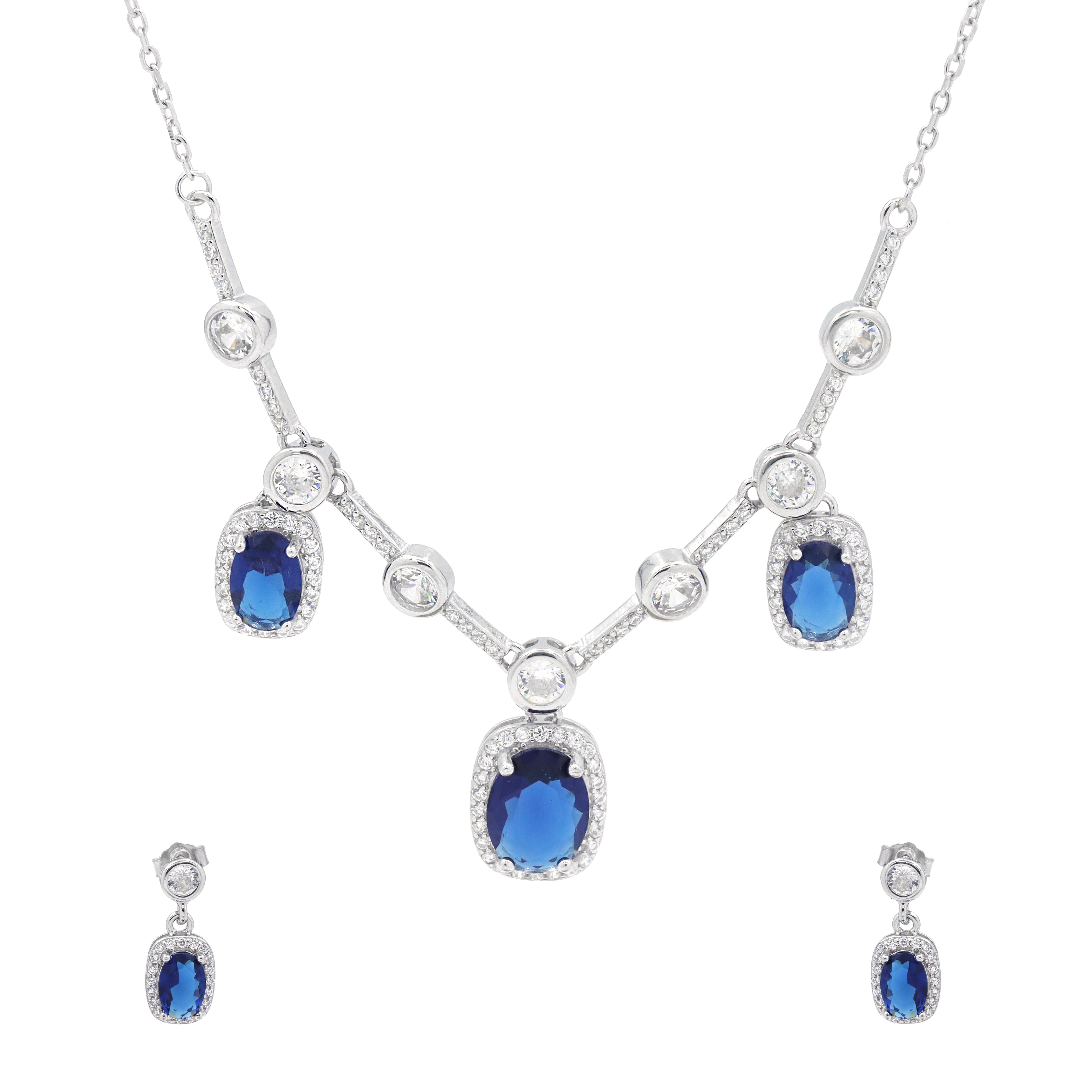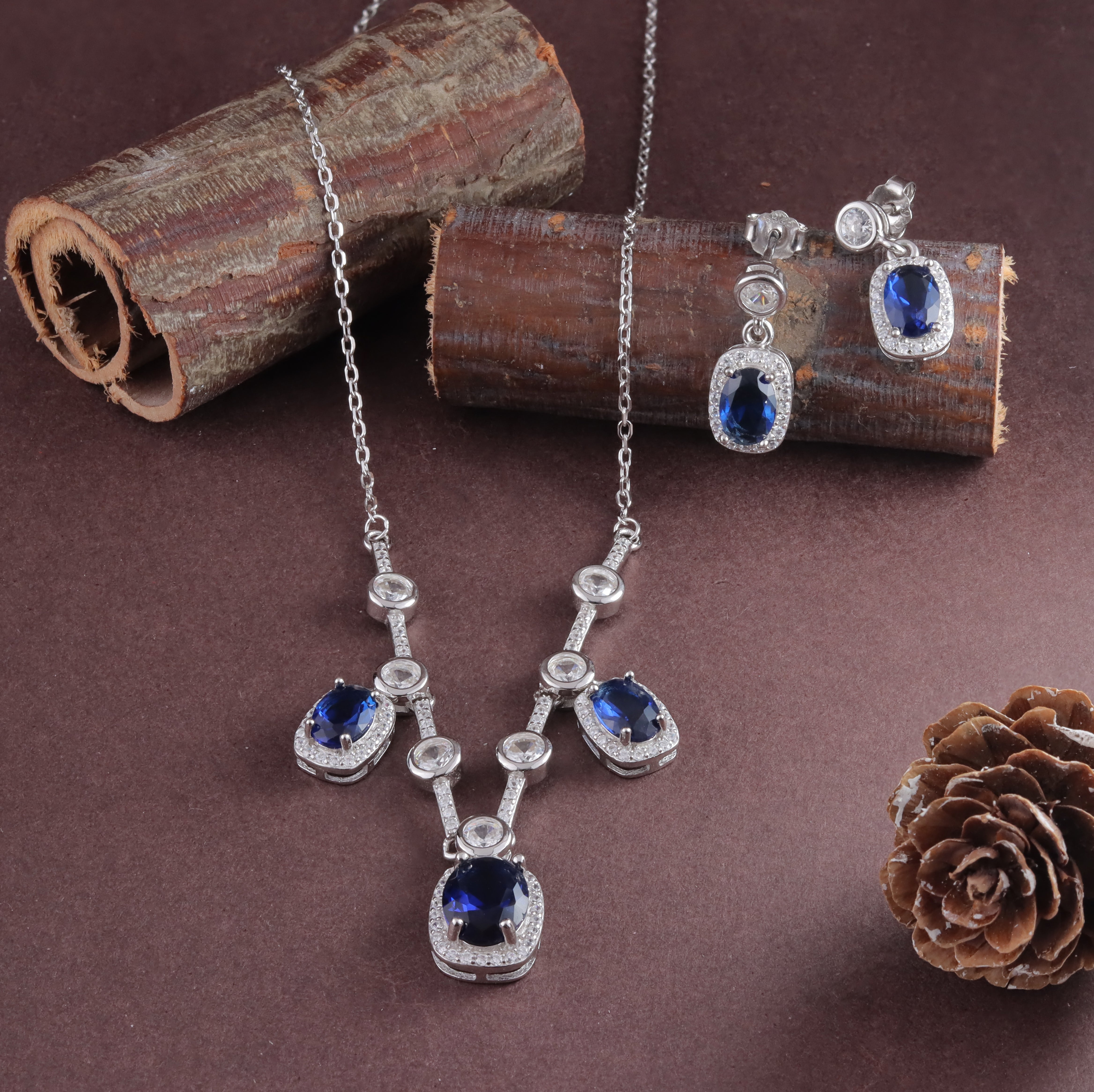 Add a touch of timeless elegance to your look with the Eri Silvers Sapphire Sparkle Necklace & Earring Set. Crafted from 925 sterling silver and adorned with deep blue sapphire-inspired stones, this graceful design celebrates sophistication and style. Each piece is BIS-certified, ensuring purity and authenticity you can trust. Whether it’s a romantic dinner, festive celebration, or an everyday sparkle, this set complements every moment beautifully.