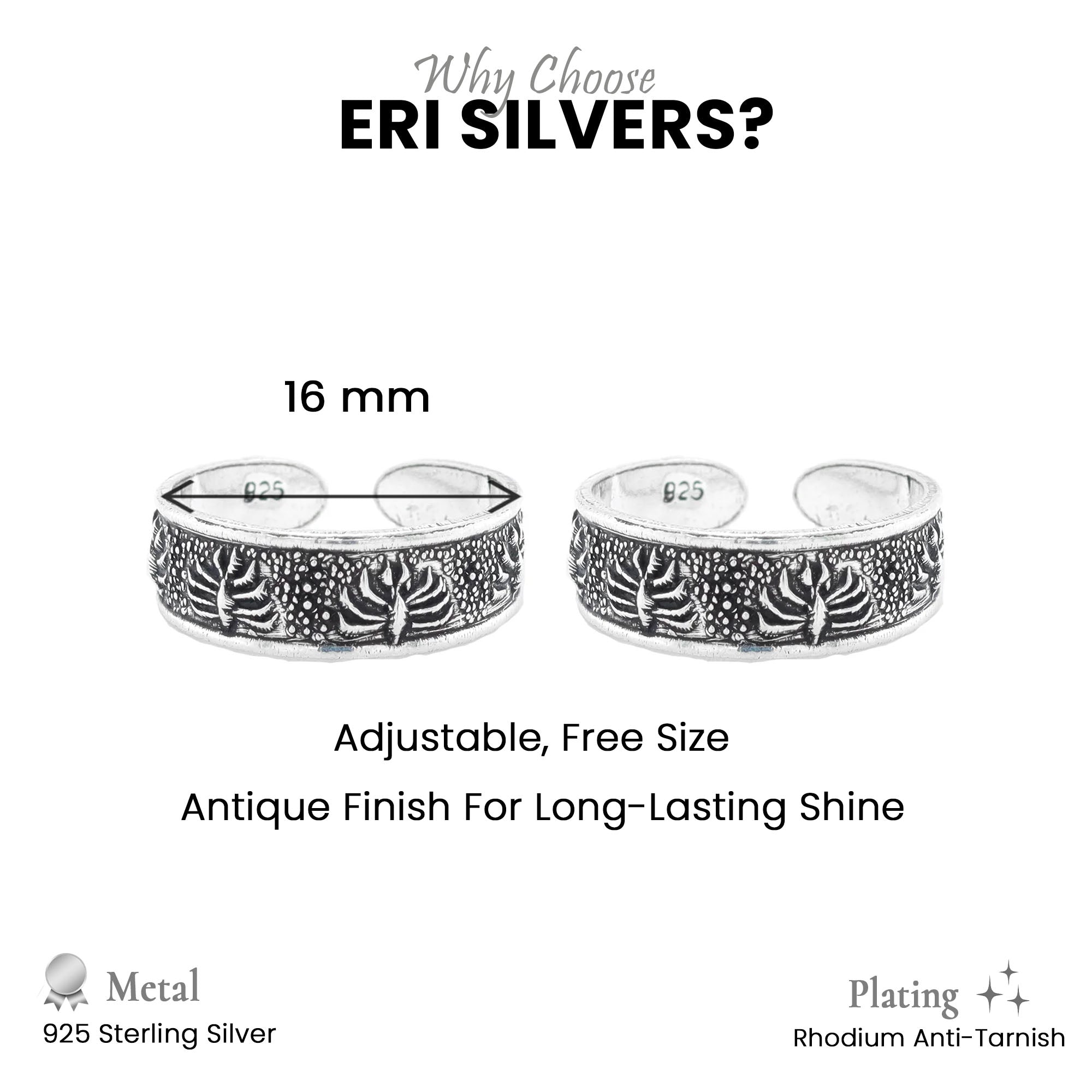 Order now and get delivery betweenAdd a touch of timeless beauty to your feet with the Eri Silvers 925 Sterling Silver Floral Toe Rings — a perfect blend of artistry, elegance, and authenticity.