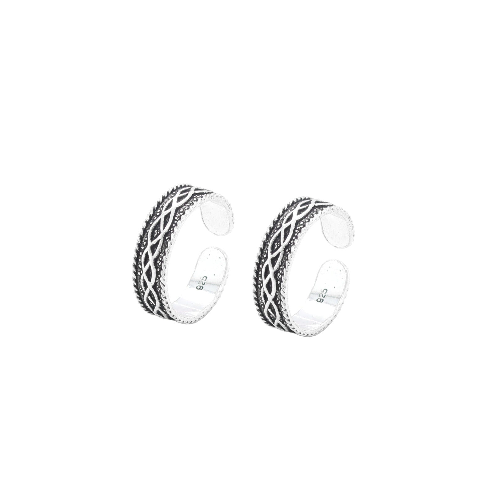 Handcrafted with a detailed interwoven braid design, this adjustable oxidized silver toe ring is perfect for those who love jewelry with character and heritage.