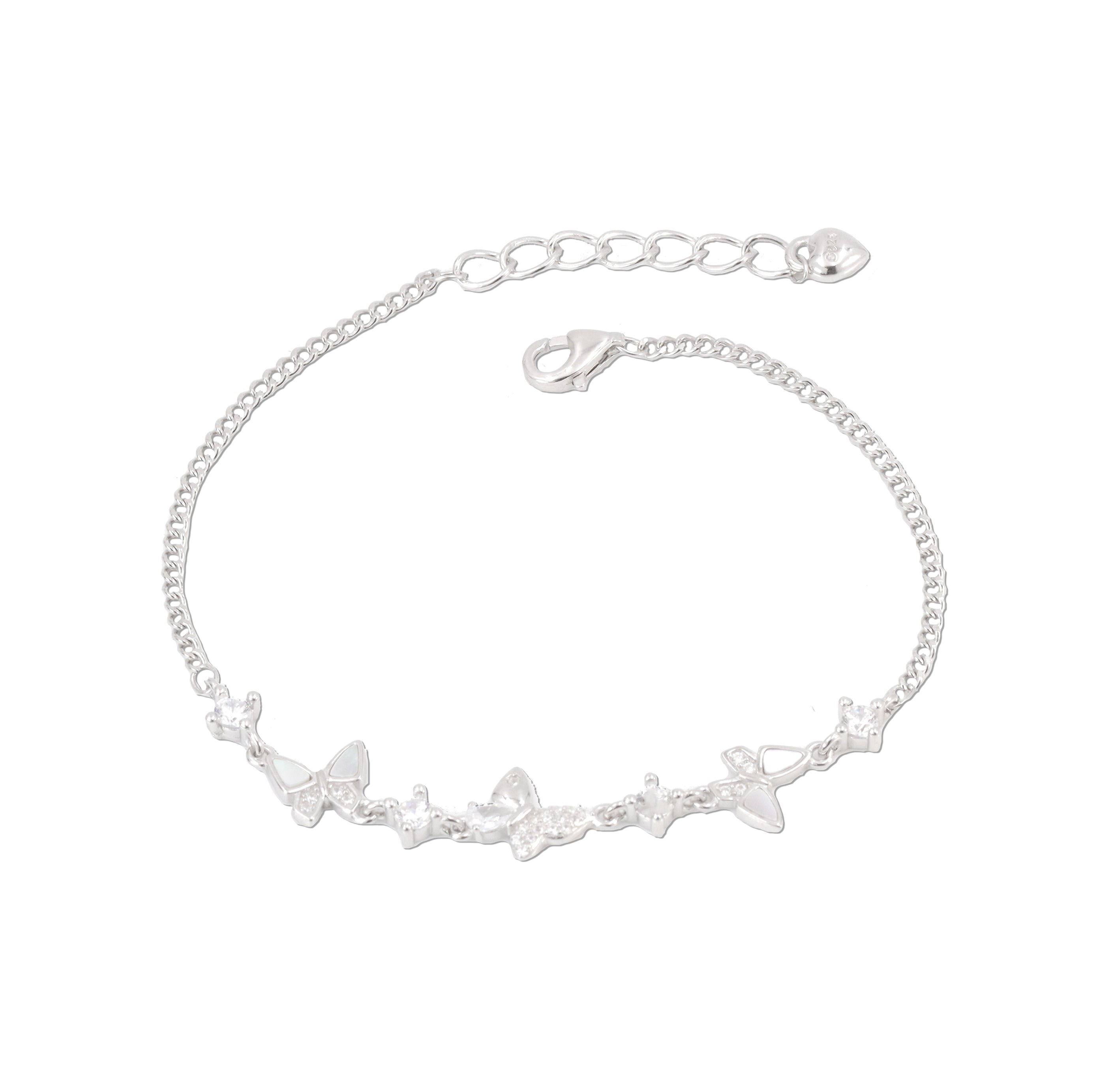 Order now and get delivery betweenLet your style take flight with our 925 Sterling Silver Butterfly & Leaf Charm Bracelet. The dainty floral-inspired design with sparkling CZ stones makes it a perfect everyday luxury piece — elegant, lightweight and feminine. Wear it solo for a minimal look or stack it with your favorite bracelets.