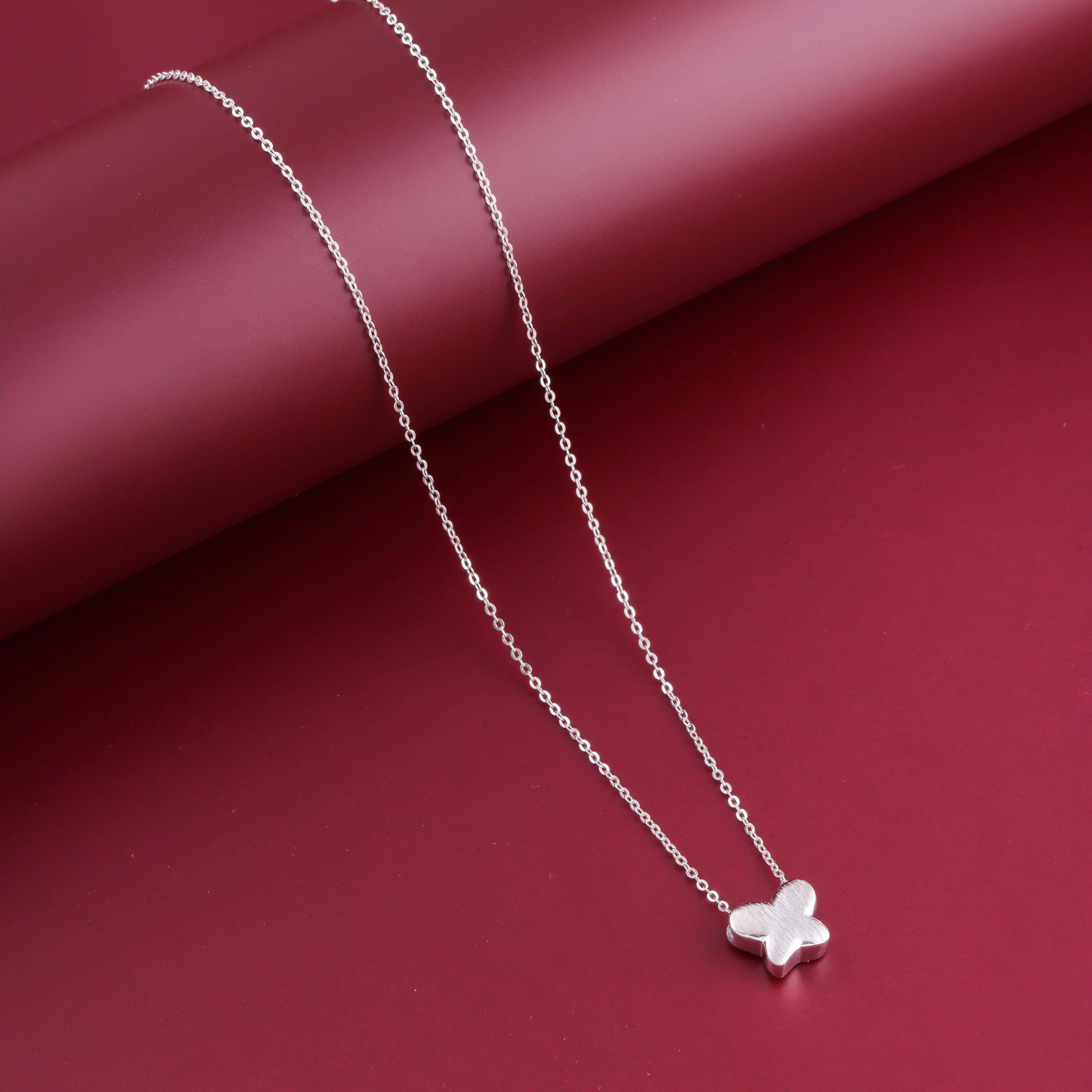 This delicate pendant features a modern butterfly motif crafted from BIS Hallmarked 925 Sterling Silver, symbolizing transformation and freedom.