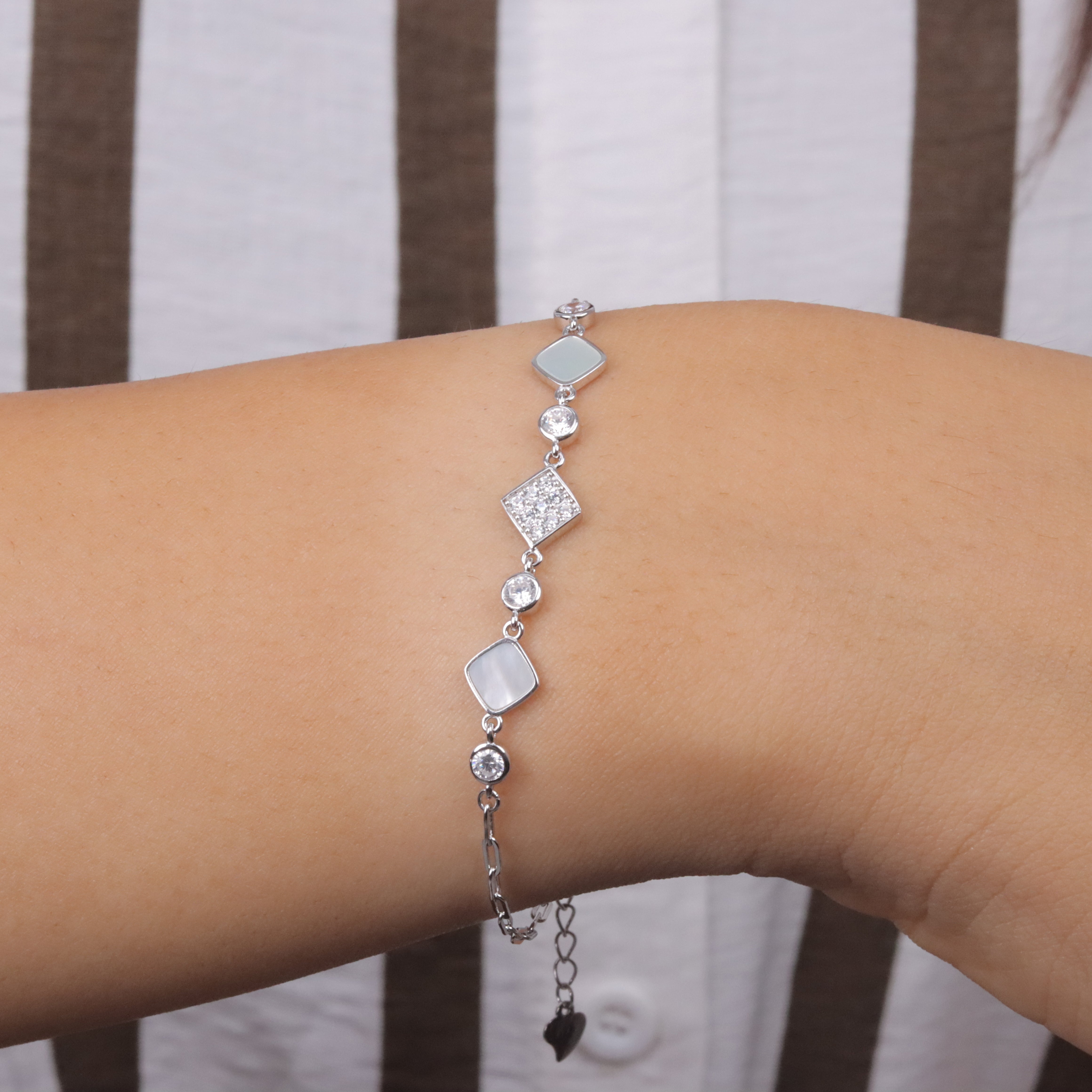 Order now and get delivery betweenGrace meets glamour in this 925 Sterling Silver Charm Bracelet for Women by Eri Silvers. This elegant bracelet features a radiant bow design adorned with shimmering cubic zirconia stones and surrounded by lustrous pearls, symbolizing femininity and sophistication.