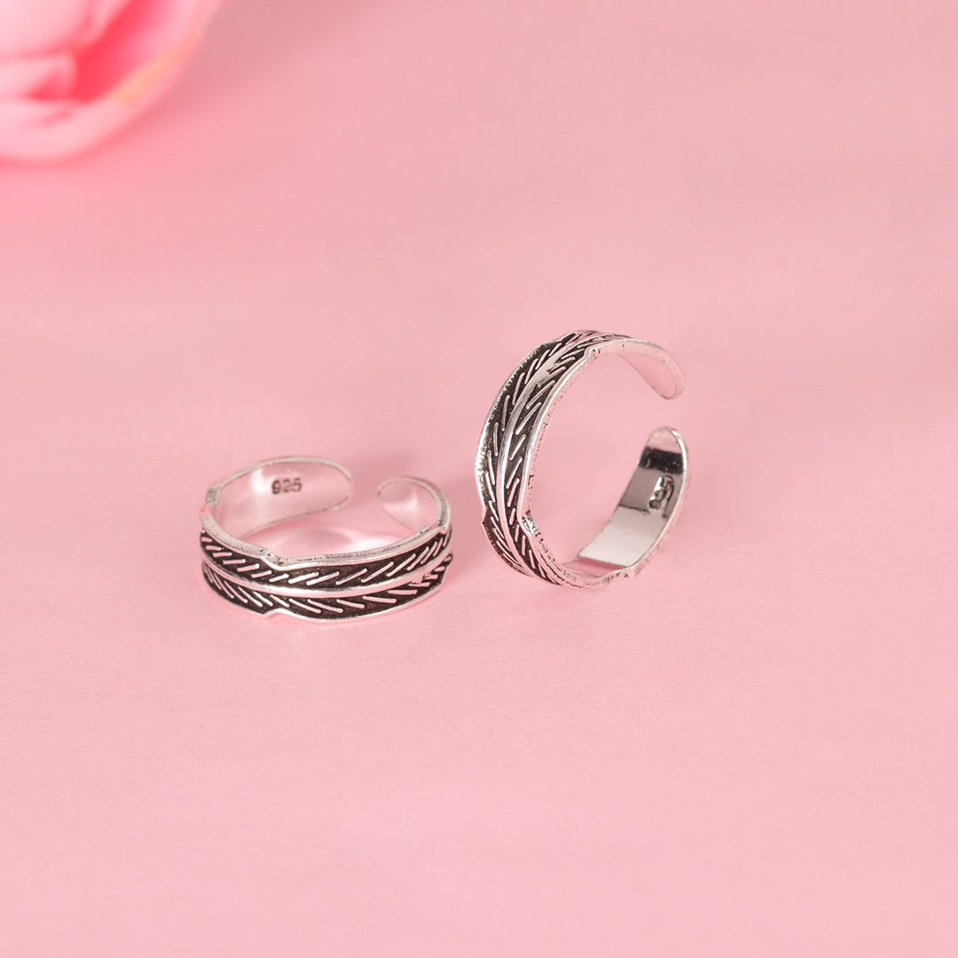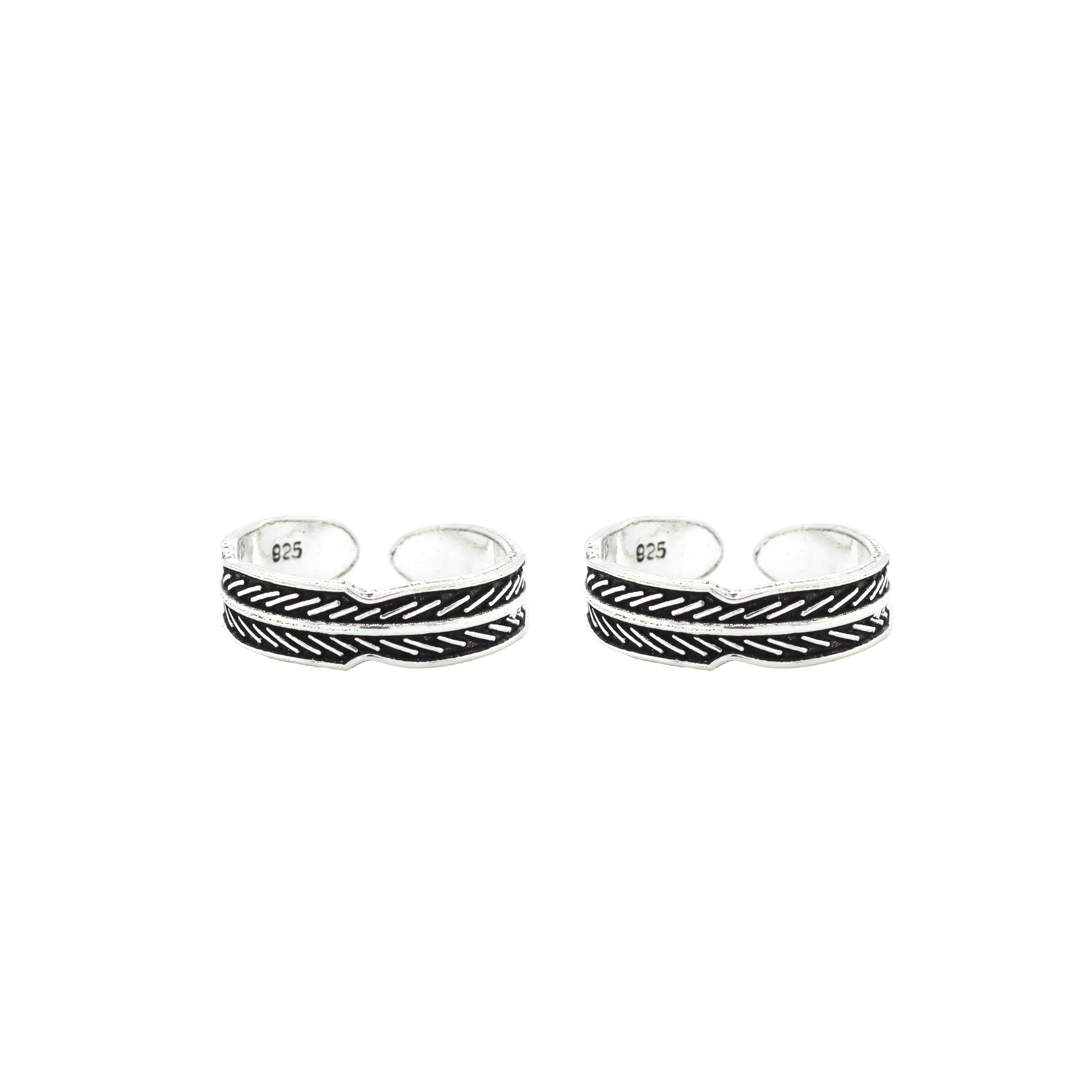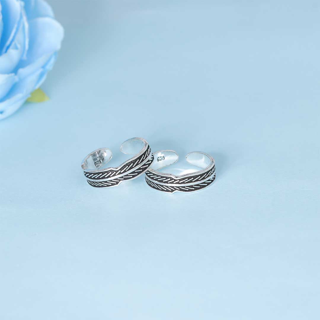 Handcrafted from BIS-certified 92.5% sterling silver, these toe rings feature a distinctive chevron pattern inspired by traditional artistry and contemporary design. The oxidized detailing enhances the depth of the motif, making them perfect for both daily wear and festive occasions.