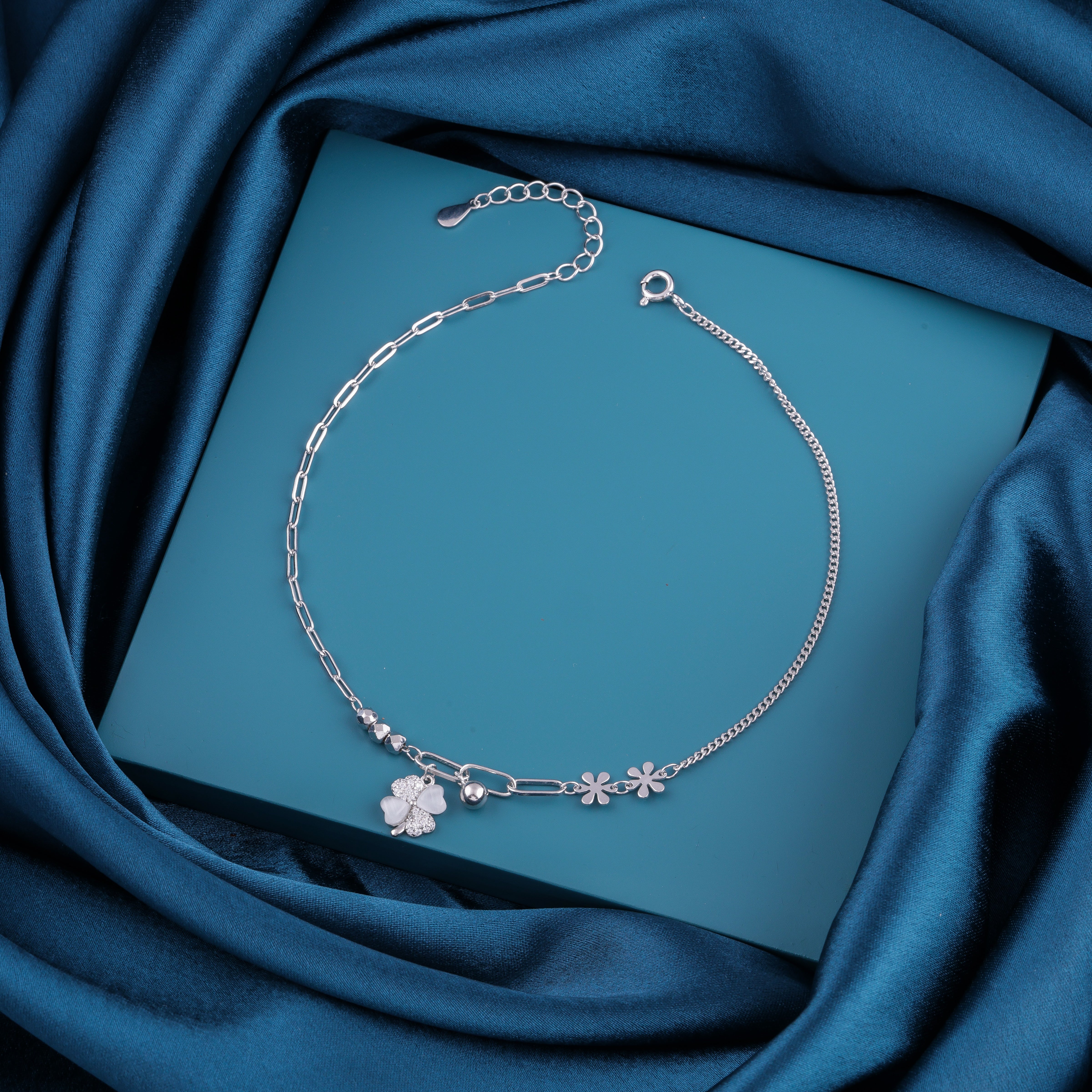 This delicate piece features a beautiful combination of clover and floral motifs, symbolizing luck, growth, and grace — perfect for women who love jewelry with meaning.
