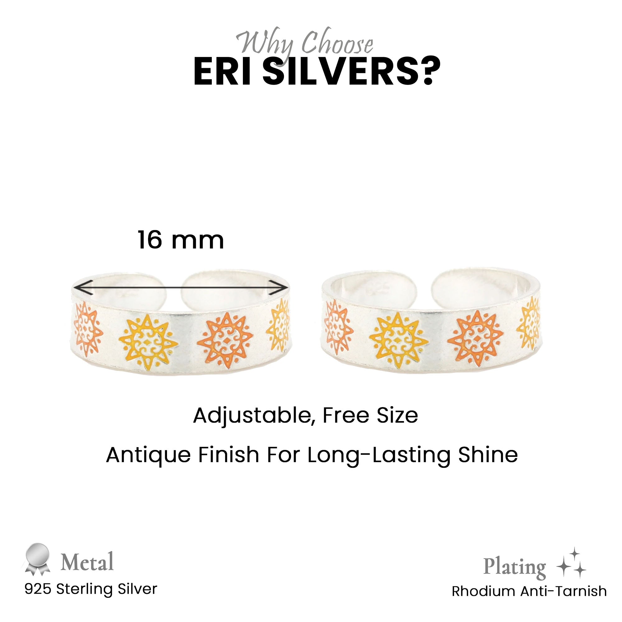 Order now and get delivery betweenAdd a pop of color and charm to your everyday look with our 925 Sterling Silver Color-Enamel Floral Toe Ring. Designed for comfort and style, this lightweight adjustable toe ring features beautifully crafted pink and blue floral motifs, making it the perfect accessory for daily wear, festive looks, or beach vibes.