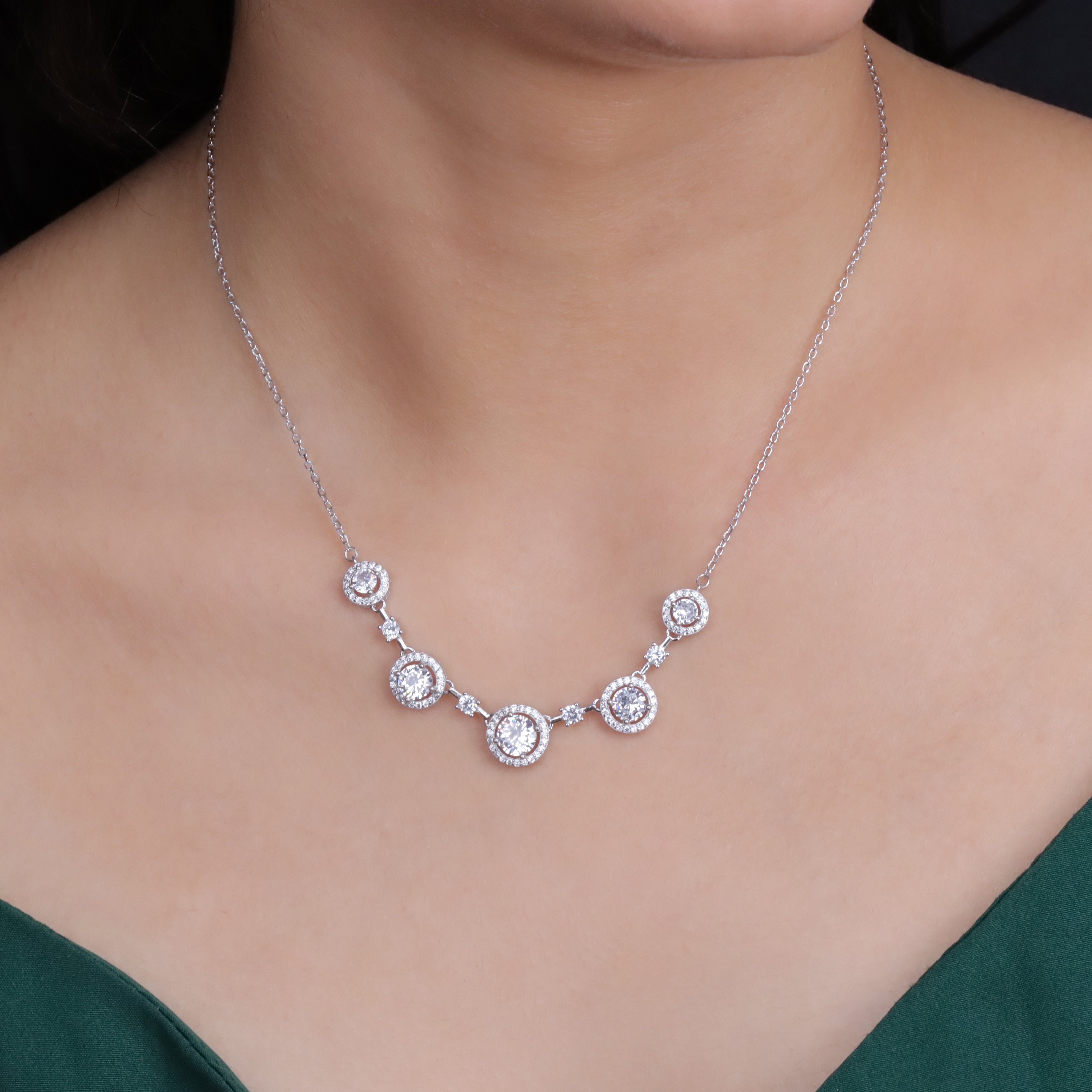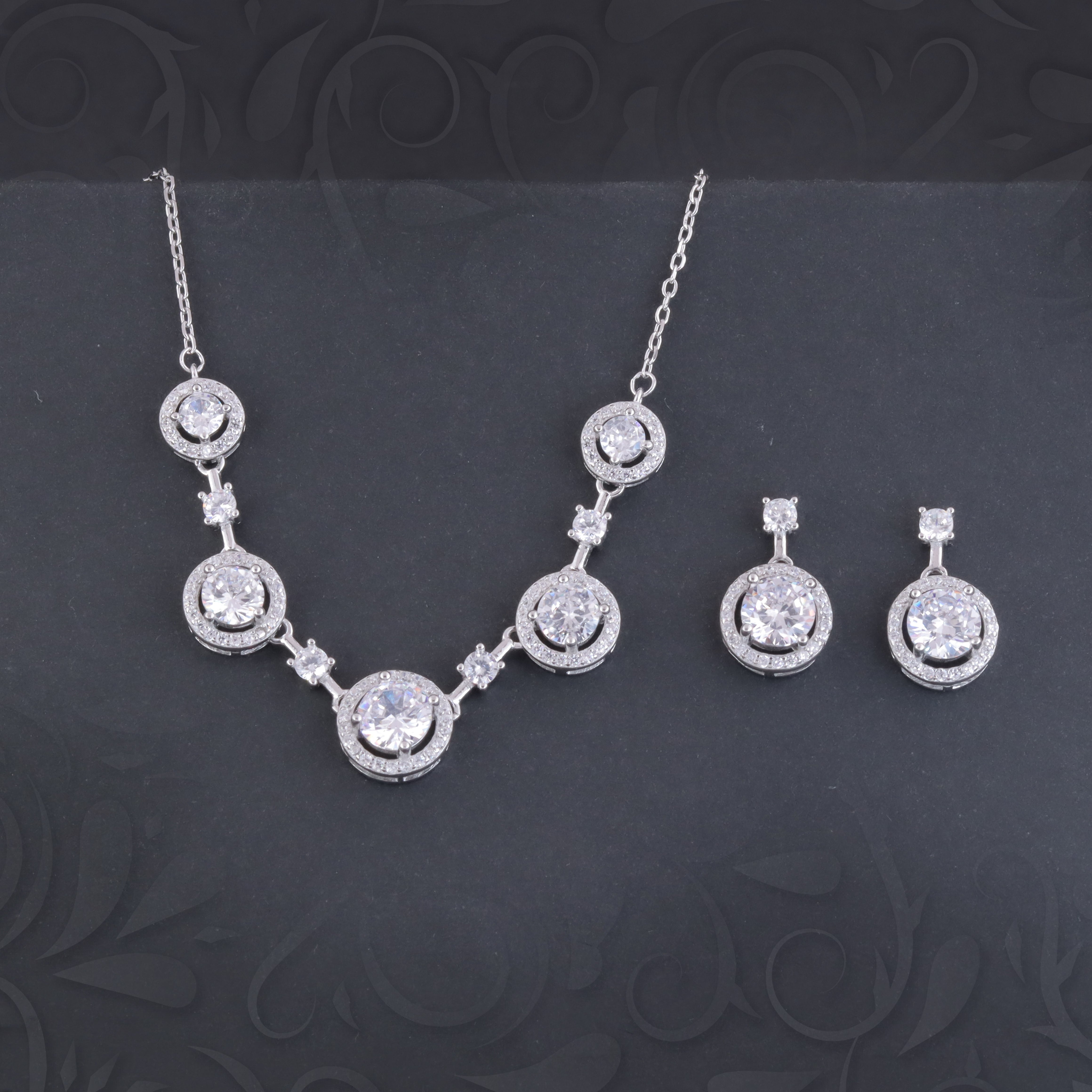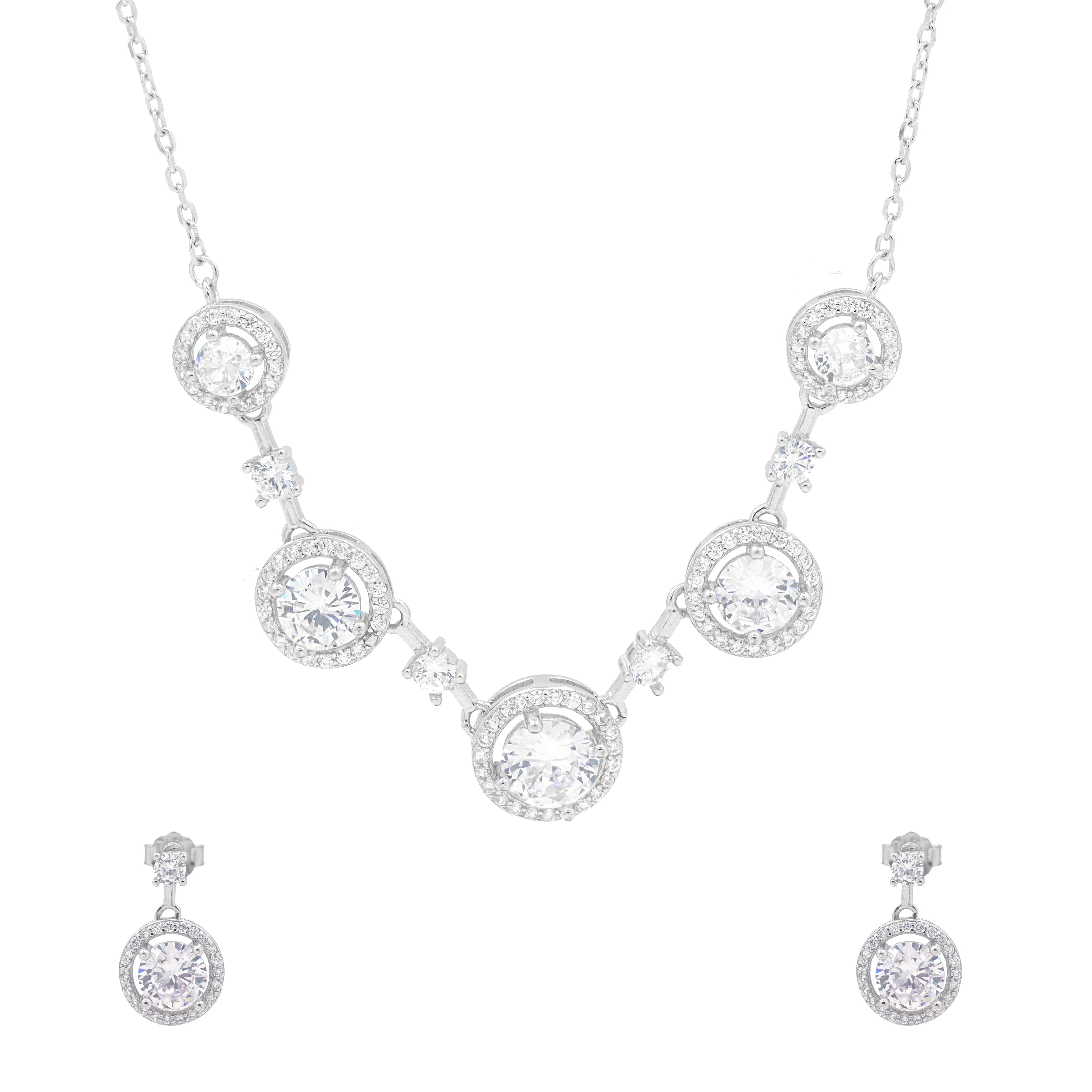 925 Sterling Silver CZ Bridal Necklace & Earrings Set