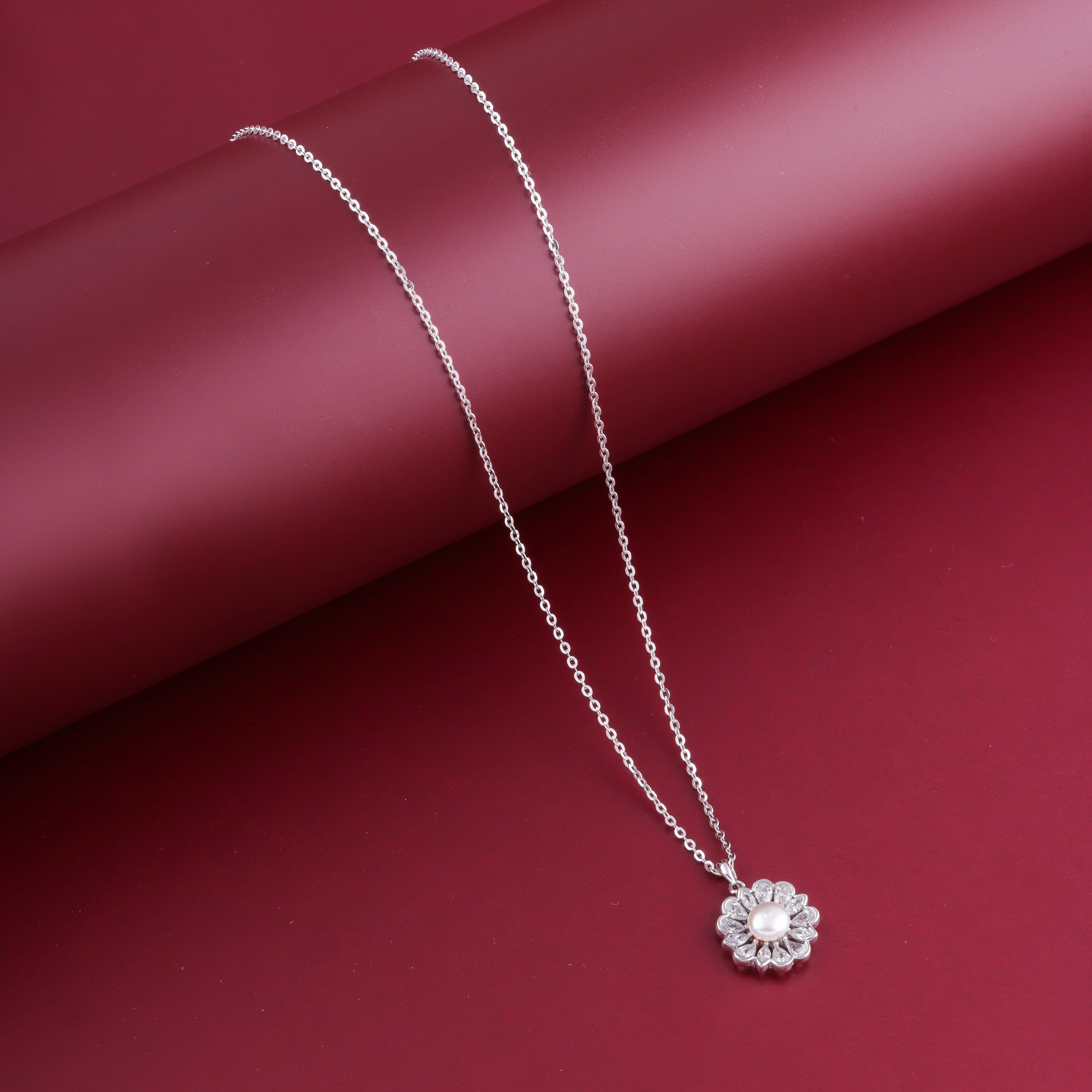 Elevate your look with timeless charm — the Eri Silvers 925 Sterling Silver Pearl Flower Pendant Necklace blends sophistication and modern grace. Designed with a radiant round freshwater pearl surrounded by shimmering CZ stones in a delicate floral pattern, this pendant is a symbol of purity, beauty, and elegance.