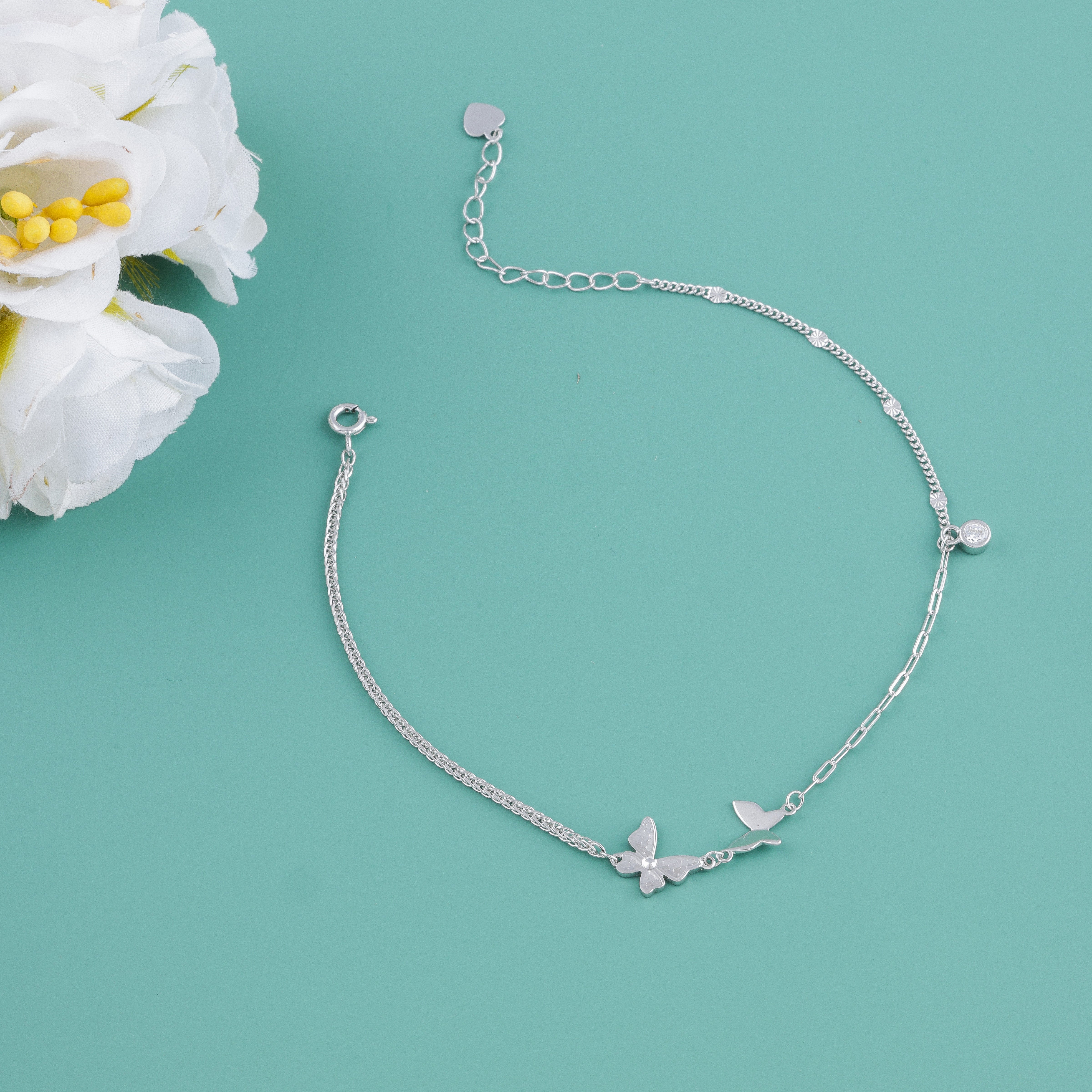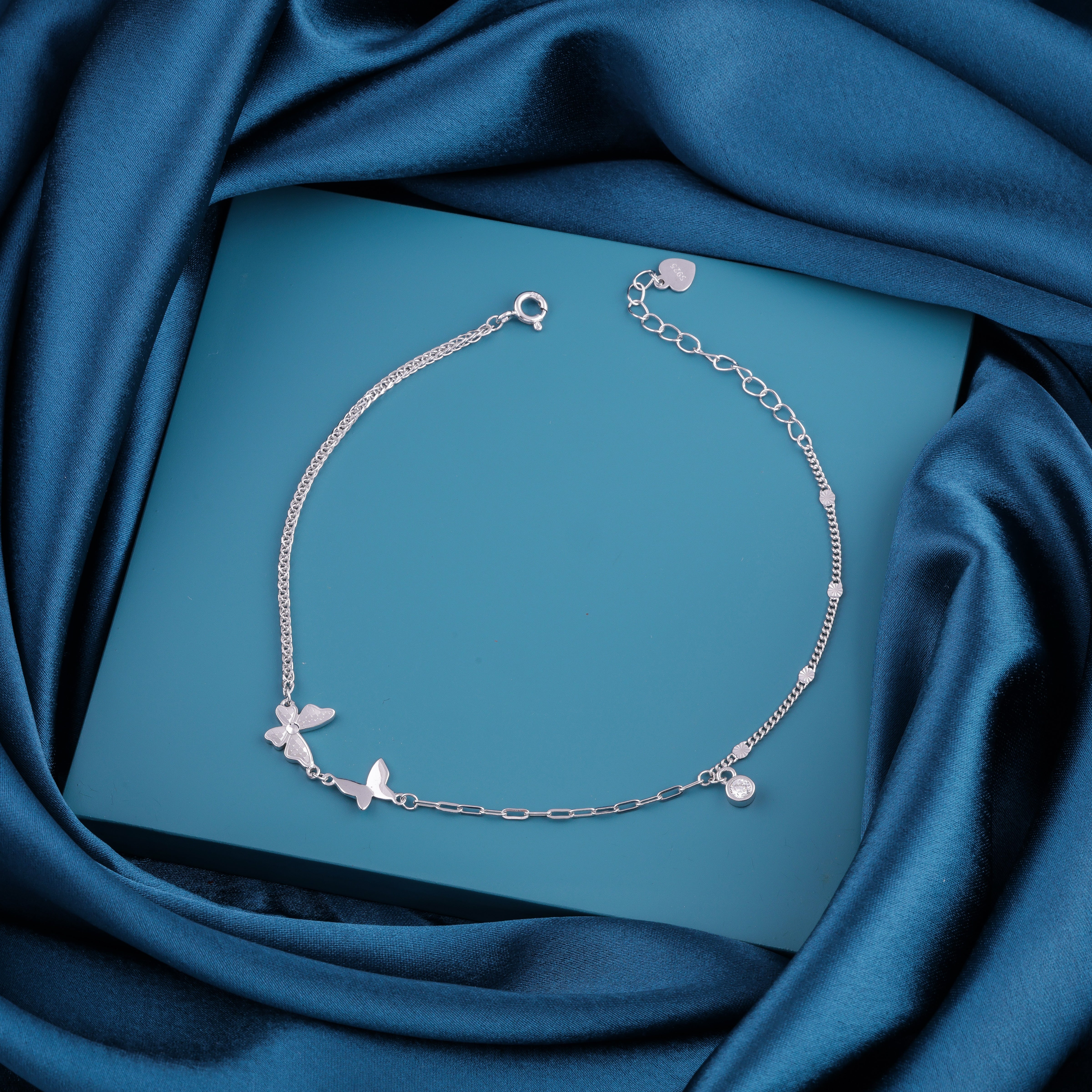 Add a touch of subtle elegance to your look with the Eri Silvers 925 Sterling Silver Dual Butterfly Anklet — a perfect fusion of minimalism and charm.