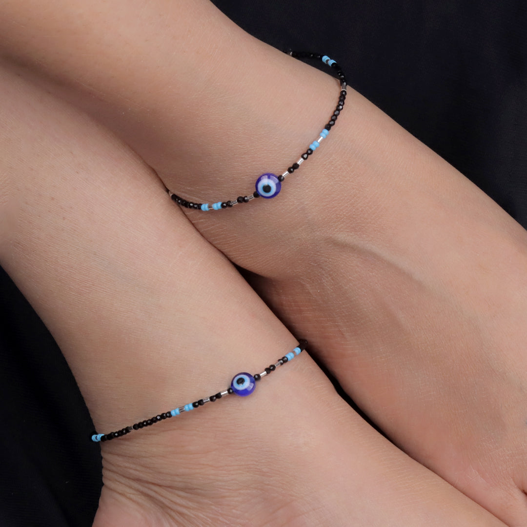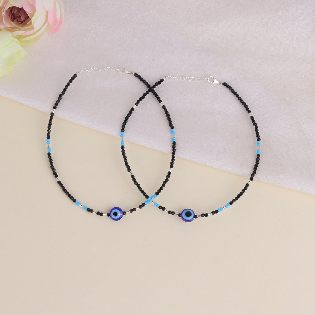Order now and get delivery betweenElegant 925 sterling silver anklet with black beads and evil eye charm. Designed for daily wear and protection from negative energy.