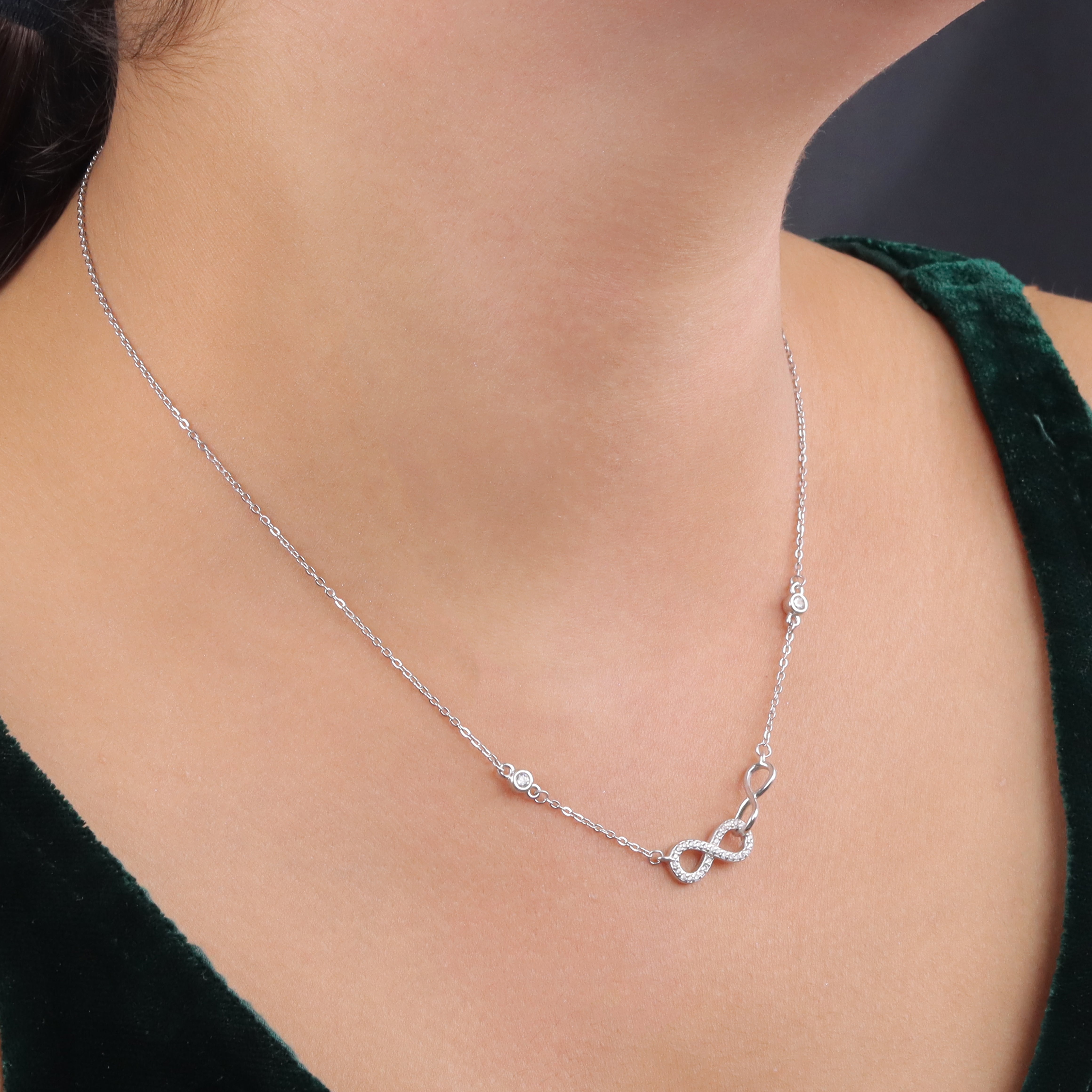 Shop BIS Certified 925 Sterling Silver Infinity Necklace & Earrings Set from Eri Silvers. Sparkling CZ diamonds, rhodium finish, hypoallergenic, perfect for daily wear & gifting.