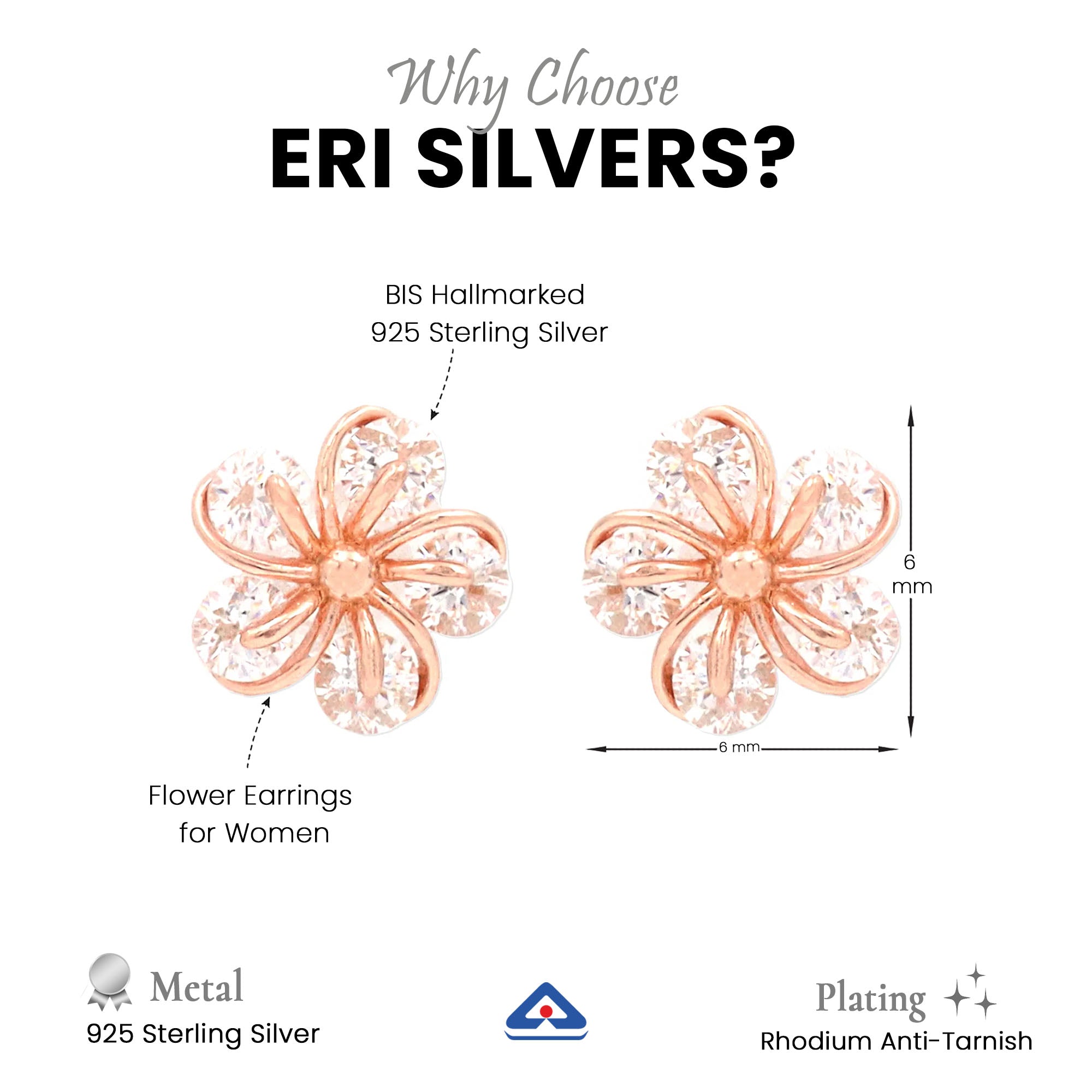 Order now and get delivery betweenThese 925 Sterling Silver Flower Earrings are designed for women who love timeless sophistication with a modern twist. Made from BIS Hallmarked Pure Sterling Silver, these earrings offer long-lasting shine, strength, and comfort.