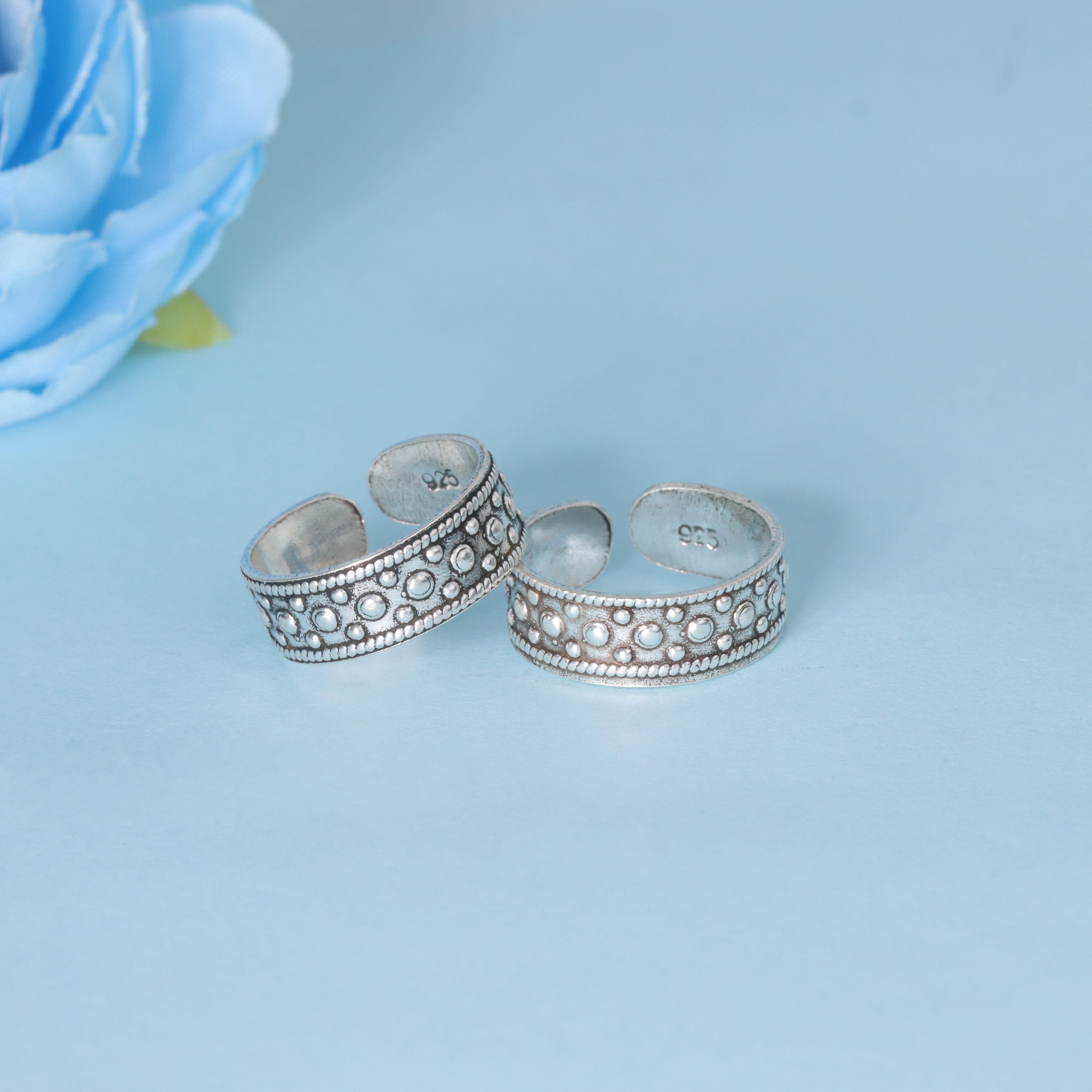 Crafted from BIS-certified 92.5% pure silver, these toe rings feature a hand-engraved dotted pattern that adds a textured, antique-inspired finish — ideal for everyday wear or festive occasions.