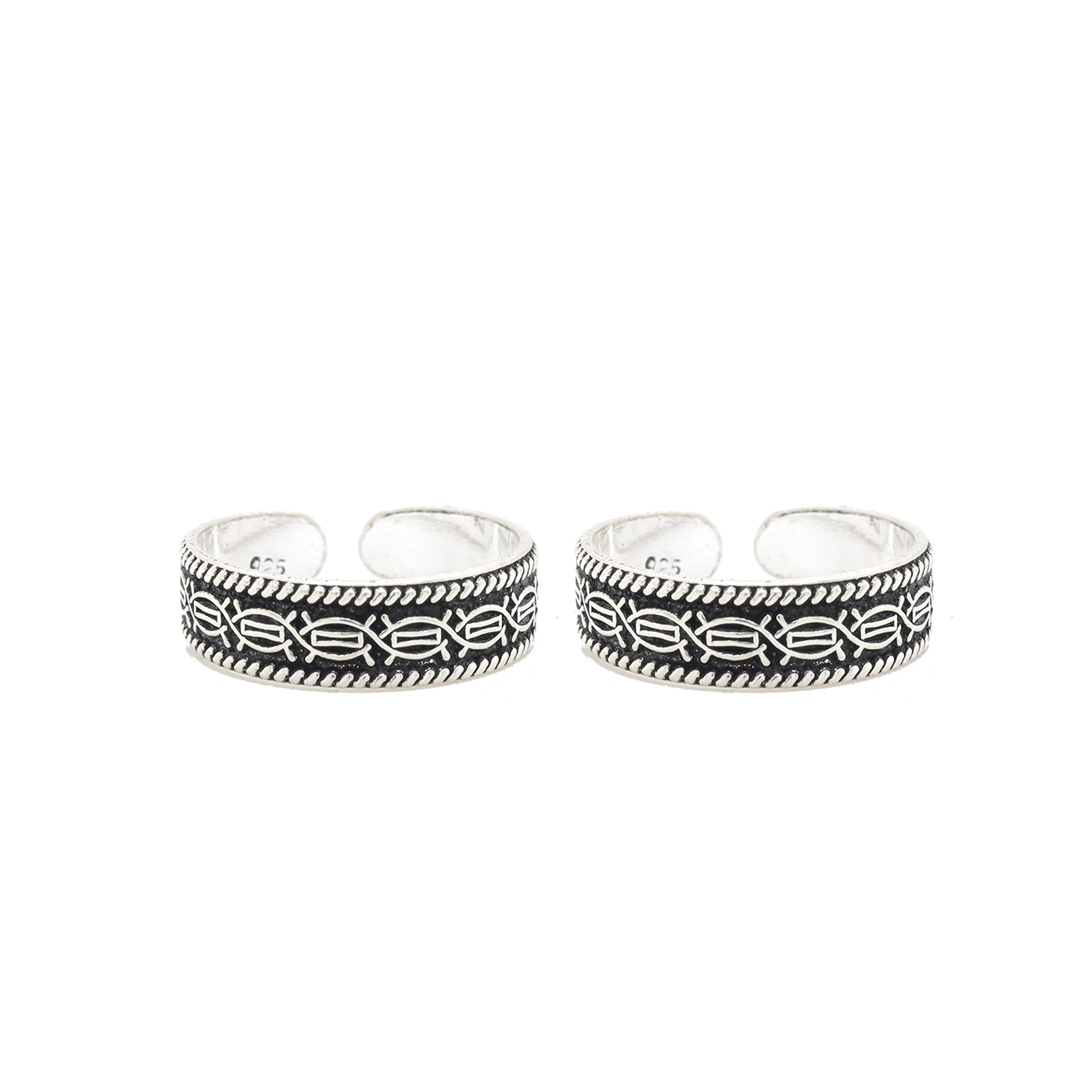 Made from BIS-certified 92.5% pure silver, this adjustable toe ring showcases an intricate hand-engraved leaf and chain pattern framed with a detailed rope border. The oxidized finish highlights every fine detail, creating a perfect balance of vintage artistry and modern elegance.