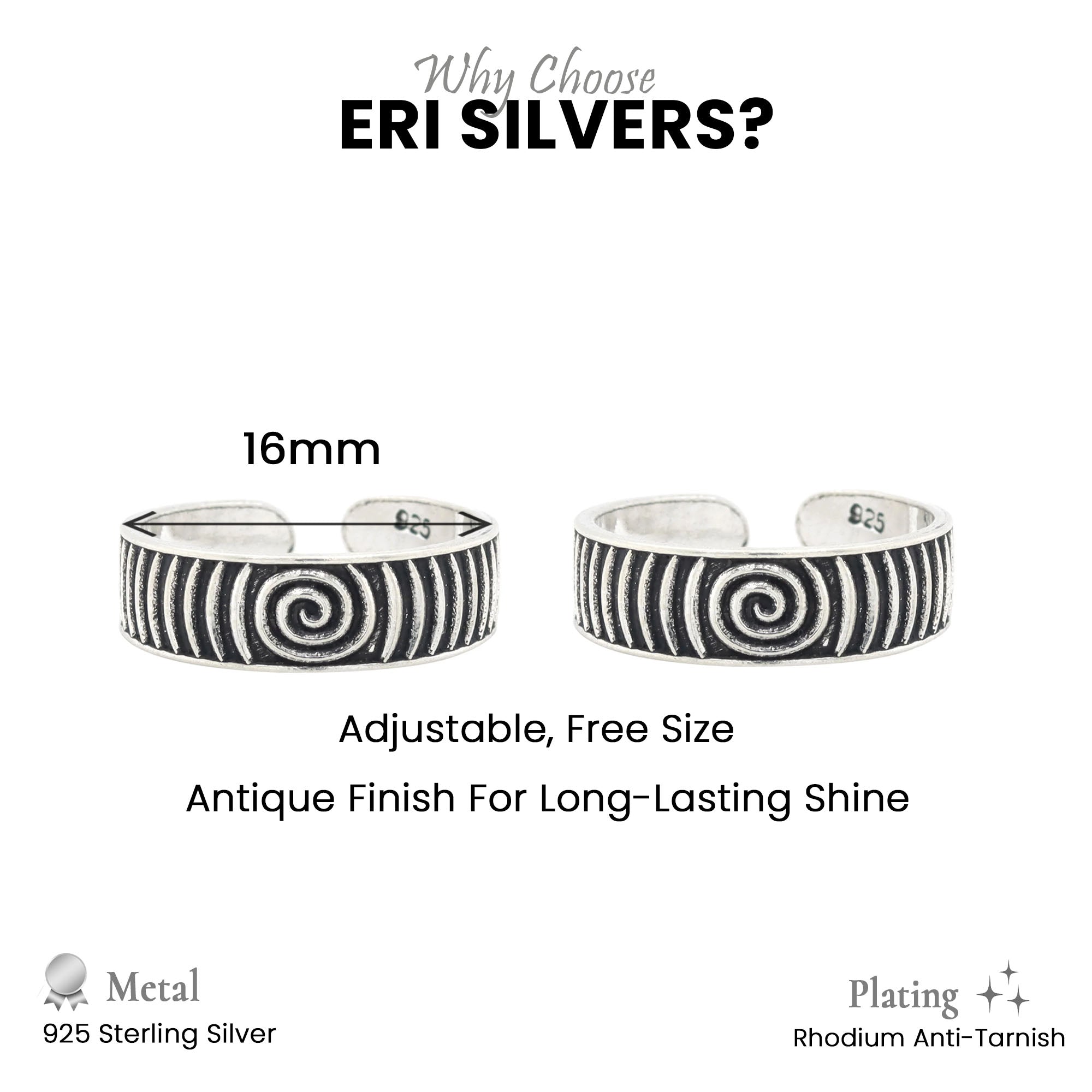 Order now and get delivery betweenBring an artistic touch to your every step with the Eri Silvers 925 Sterling Silver Spiral Toe Rings, a symbol of infinity, energy, and life’s flow.
