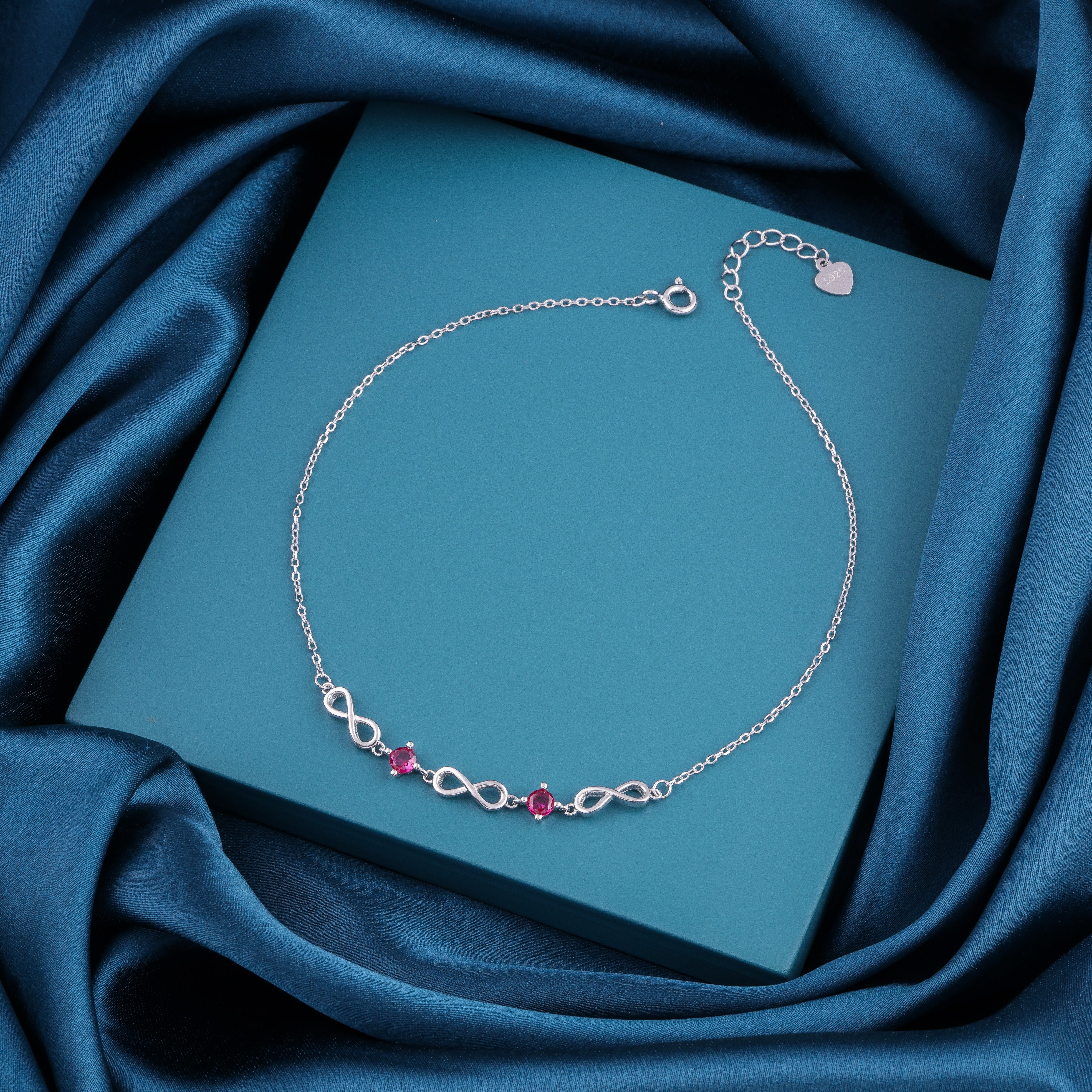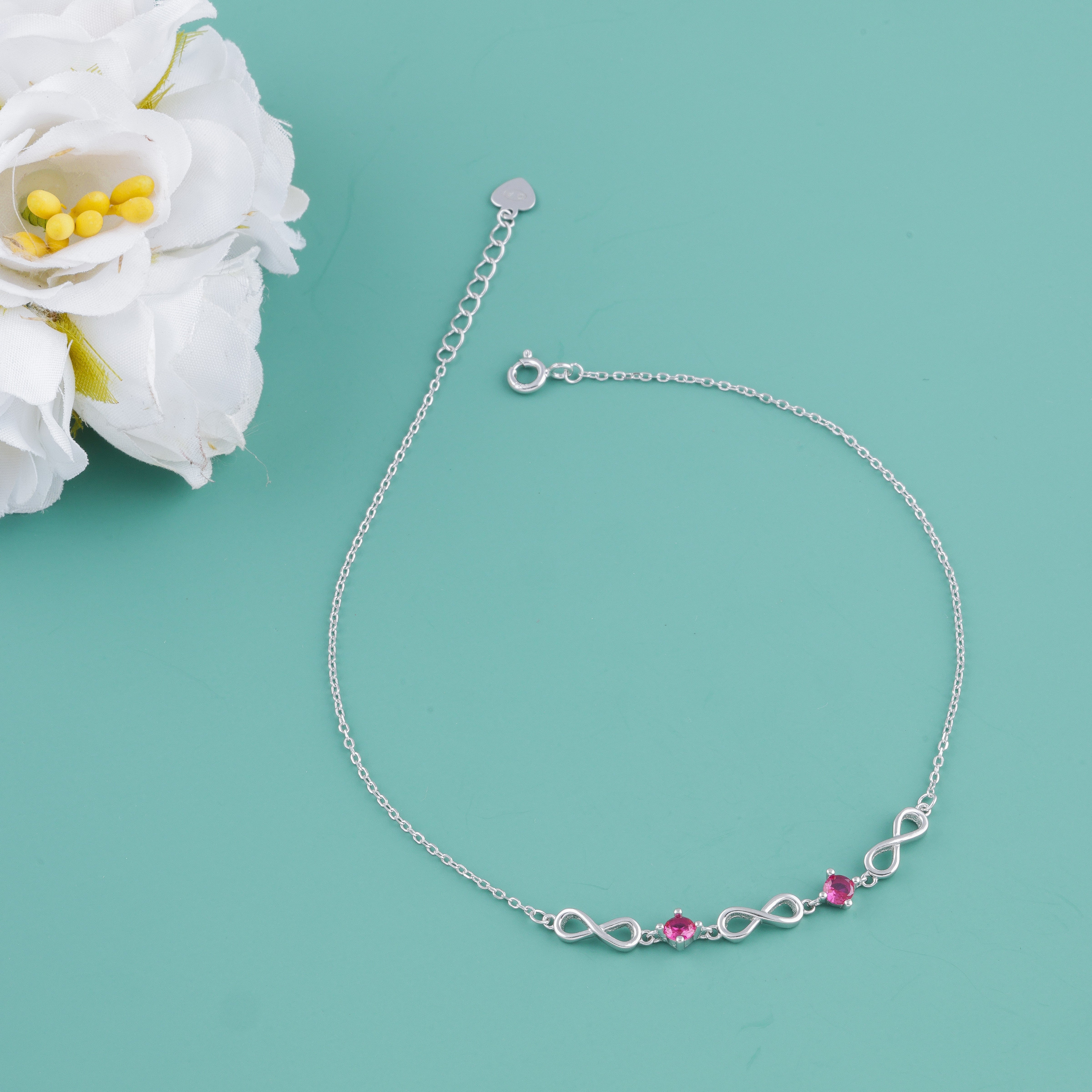 Crafted from authentic BIS-hallmarked 925 Sterling Silver, this anklet features a sleek chain adorned with a graceful Infinity symbol charm, representing timeless beauty and eternal bonds.