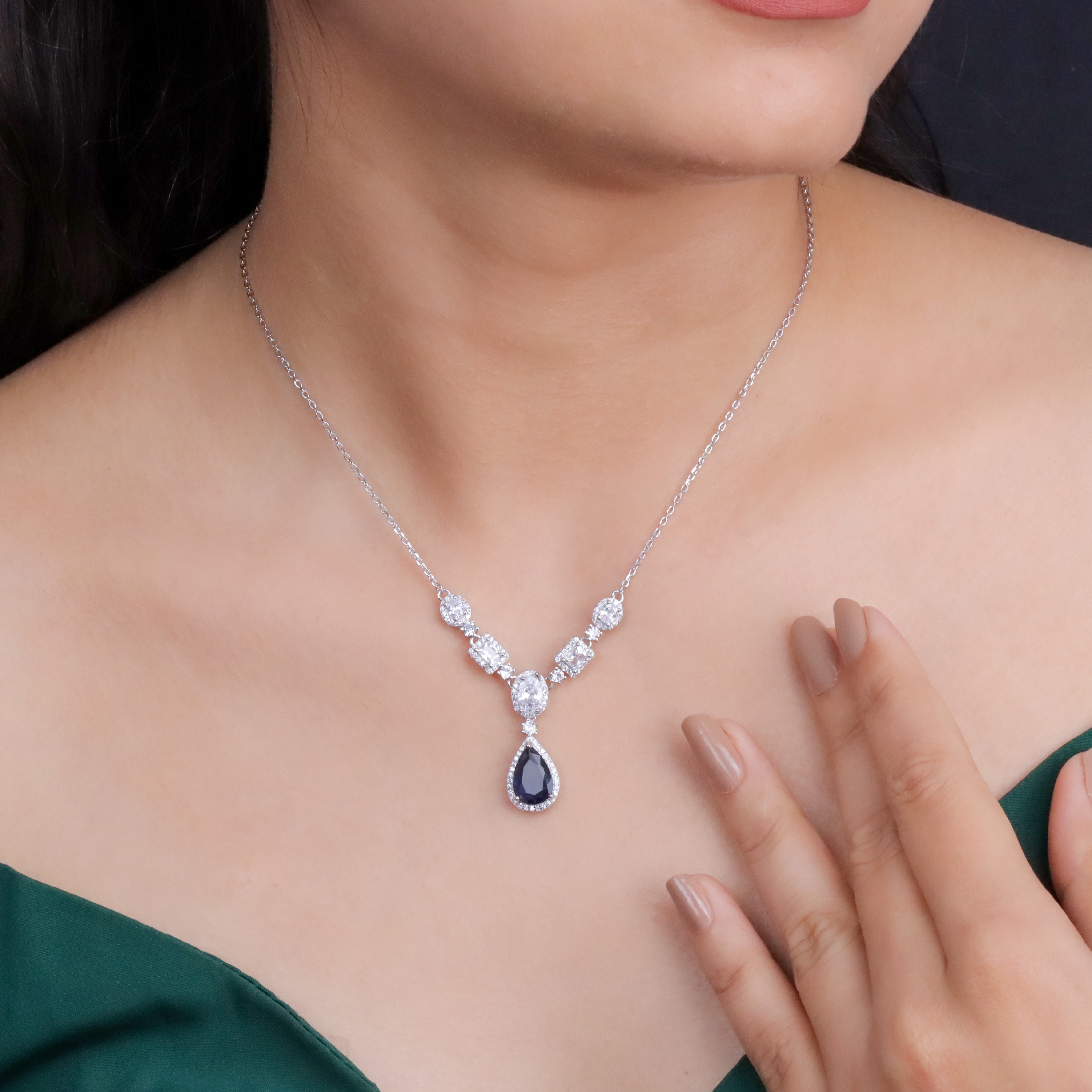 Order now and get delivery betweenAdd a touch of timeless elegance to your look with the Eri Silvers Sapphire Sparkle Necklace & Earring Set. Crafted from 925 sterling silver and adorned with deep blue sapphire-inspired stones, this graceful design celebrates sophistication and style. Each piece is BIS-certified, ensuring purity and authenticity you can trust. Whether it’s a romantic dinner, festive celebration, or an everyday sparkle, this set complements every moment beautifully.