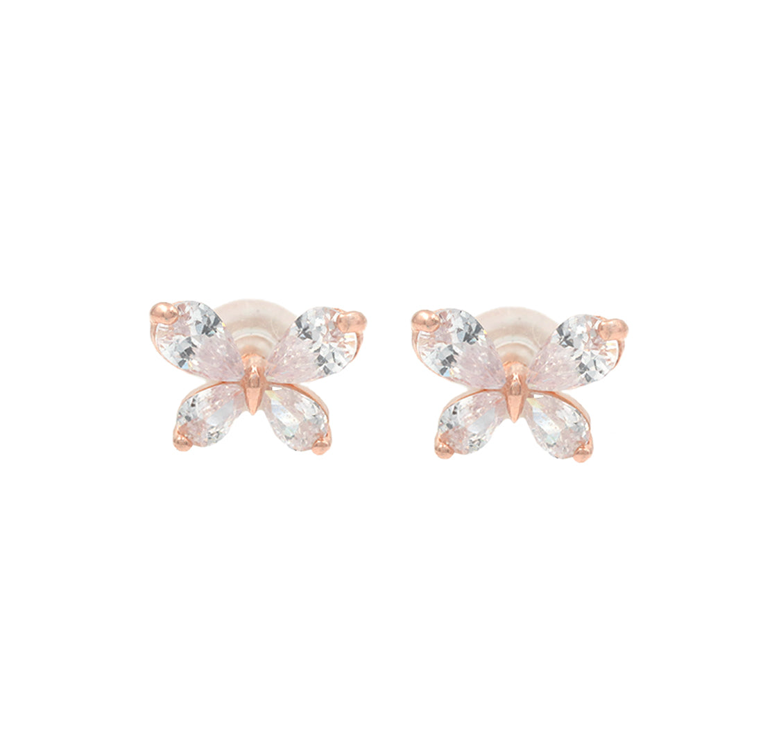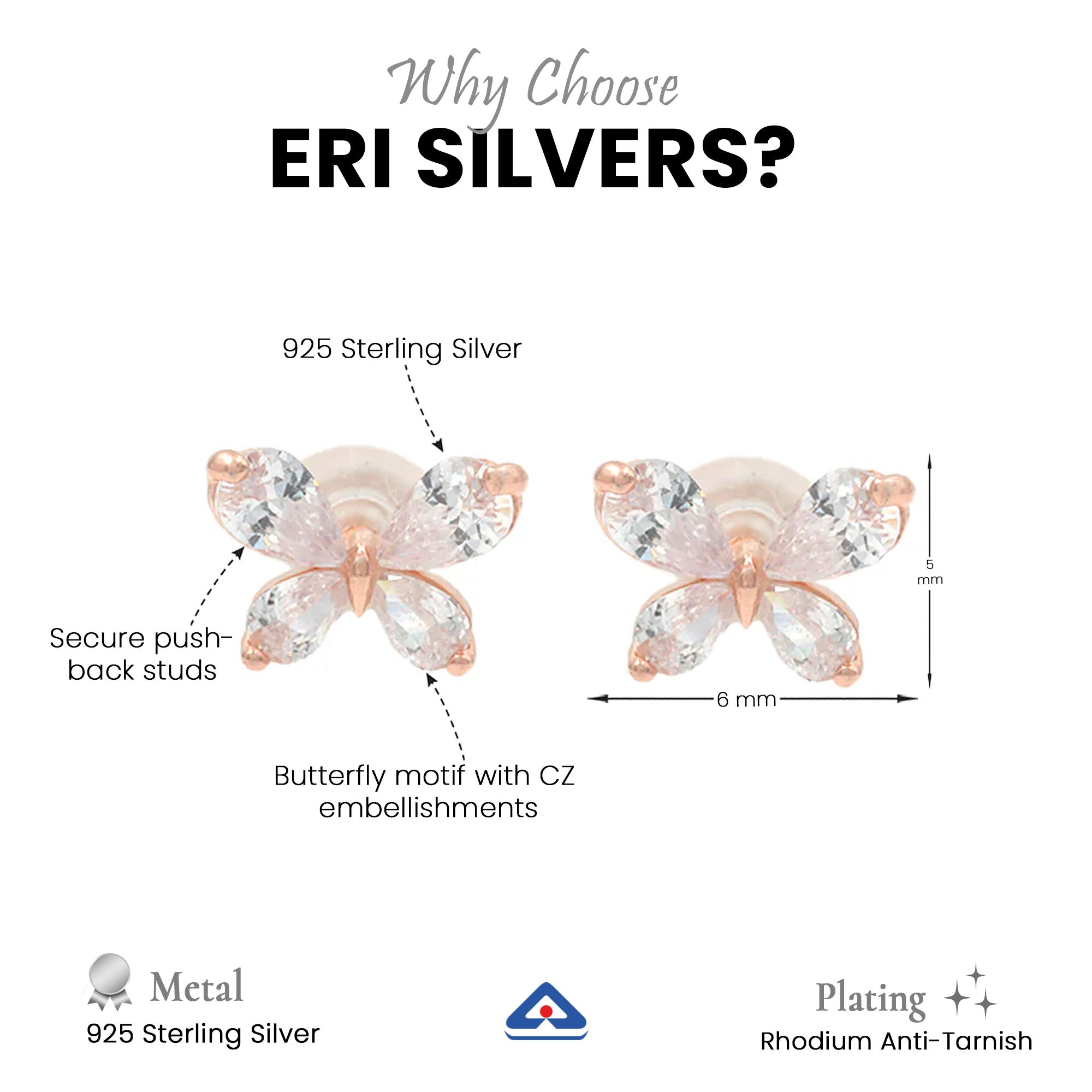 Order now and get delivery betweenEmbrace delicate beauty with the Butterfly 92.5Rose Gold Plated Silver Earrings For Women by Eri Silvers. These stunning earrings feature an elegant butterfly design adorned with brilliant-cut cubic zirconia stones that capture light beautifully.