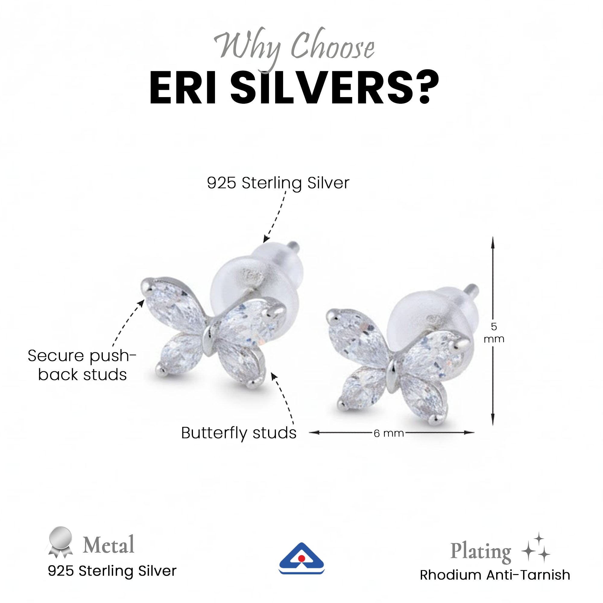 Every piece from Eri Silvers comes with a Certificate of Authenticity, assuring you of genuine 92.5 sterling silver and unmatched craftsmanship. Whether it’s for yourself or a loved one, these butterfly studs are the perfect symbol of grace and elegance.