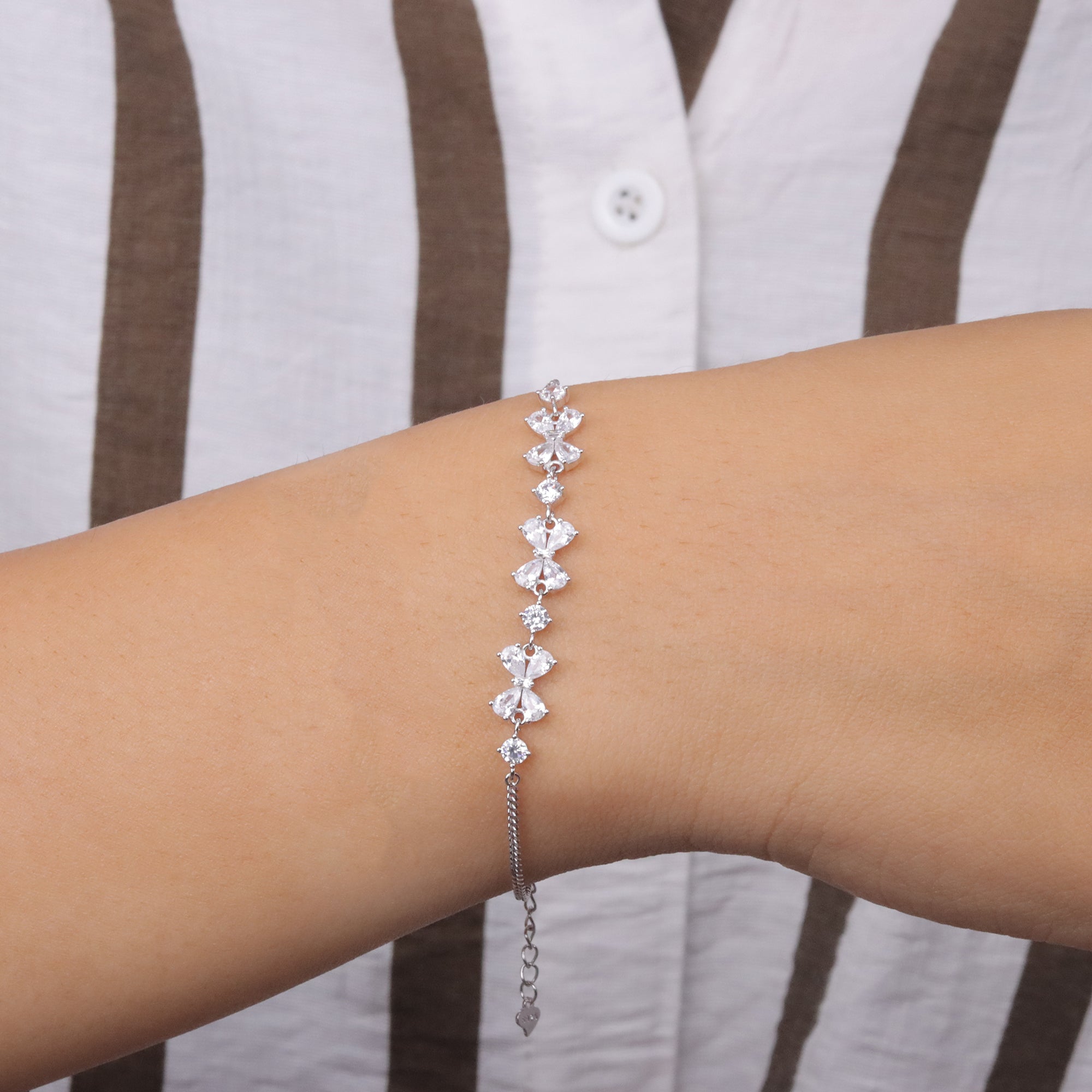 Order now and get delivery betweenGrace meets glamour in this CZ Stones Adjustable Bow Charm Bracelets for Women by Eri Silvers. This elegant bracelet features a radiant bow design adorned with shimmering cubic zirconia stones and surrounded by lustrous pearls, symbolizing femininity and sophistication.