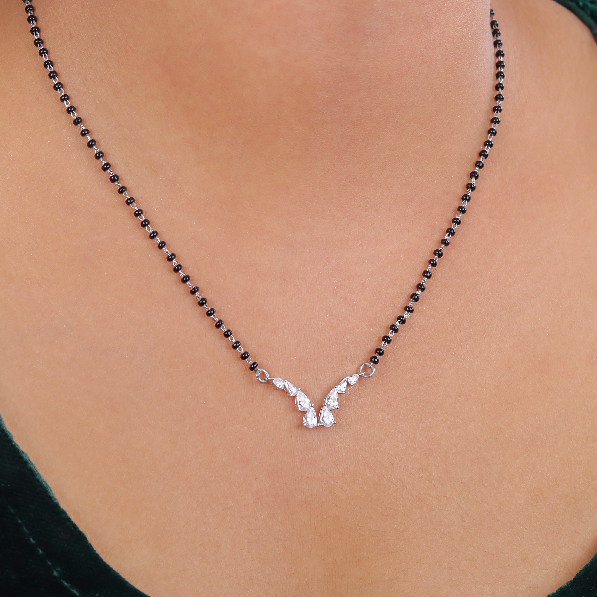 Crafted from 92.5% BIS-certified sterling silver, this elegant design features a rose gold finish and a CZ diamond-studded infinity pendant, symbolizing endless love and togetherness. The dual-tone black bead chain brings traditional grace with a modern twist — making it perfect for today’s women who adore both style and meaning.