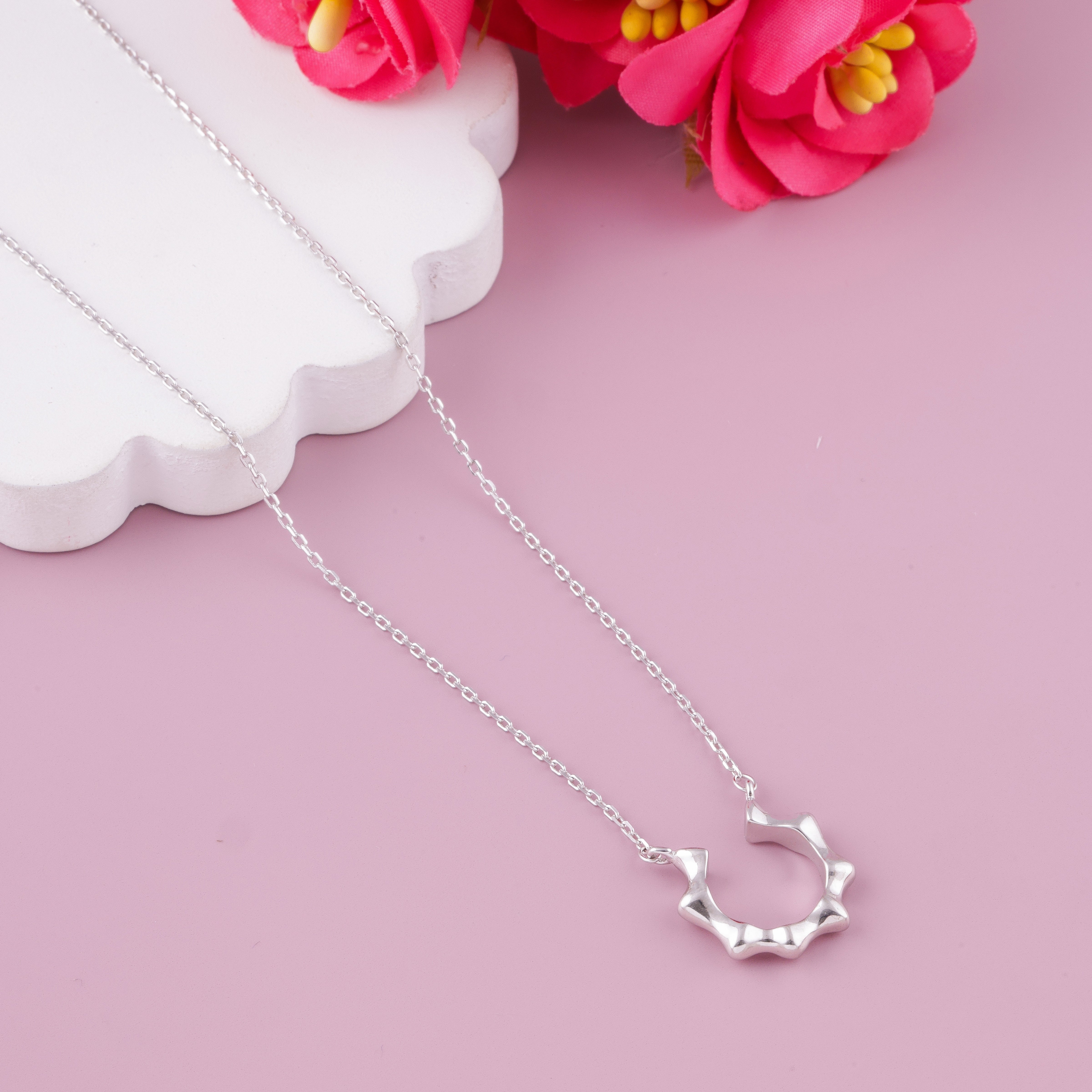 Its unique wavy circle pendant symbolizes balance and harmony, making it perfect for both daily wear and special occasions.