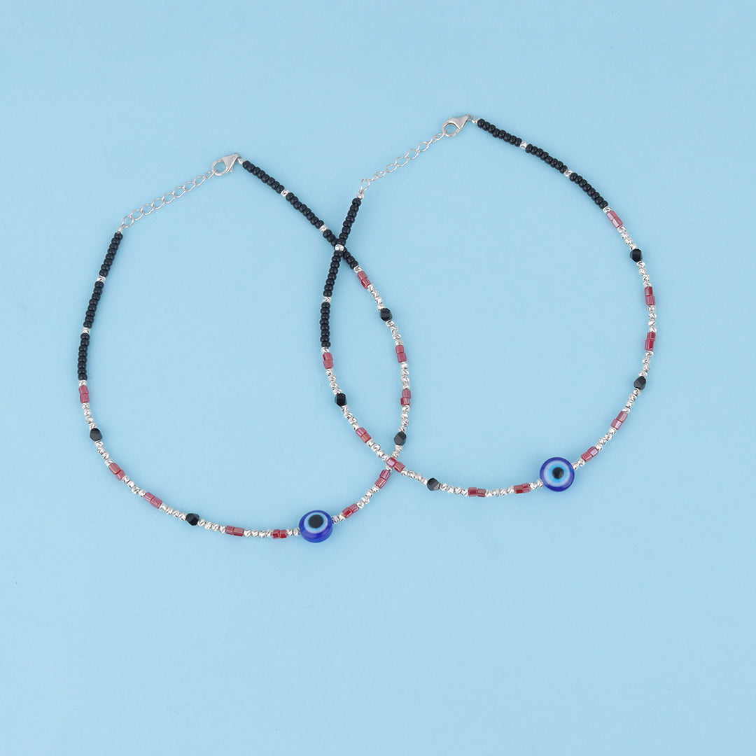Order now and get delivery betweenElegant 925 sterling silver anklet with black beads and evil eye charm. Designed for daily wear and protection from negative energy.