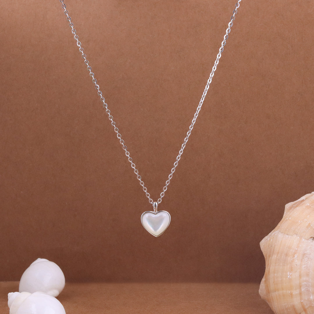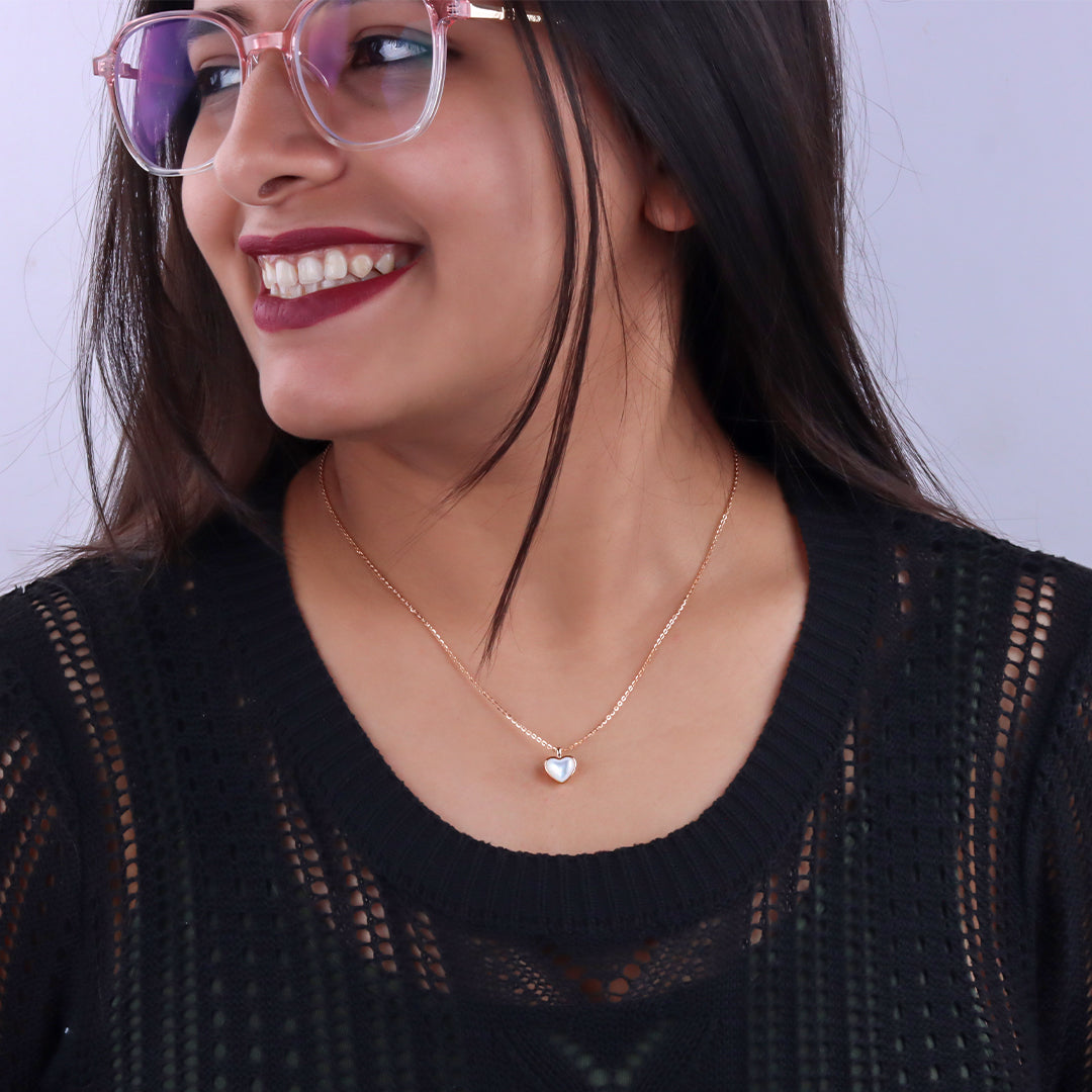 This Mother of Pearl Heart Pendant with Chain features a timeless heart charm, making it a must-have in the latest Indian pendant collection.