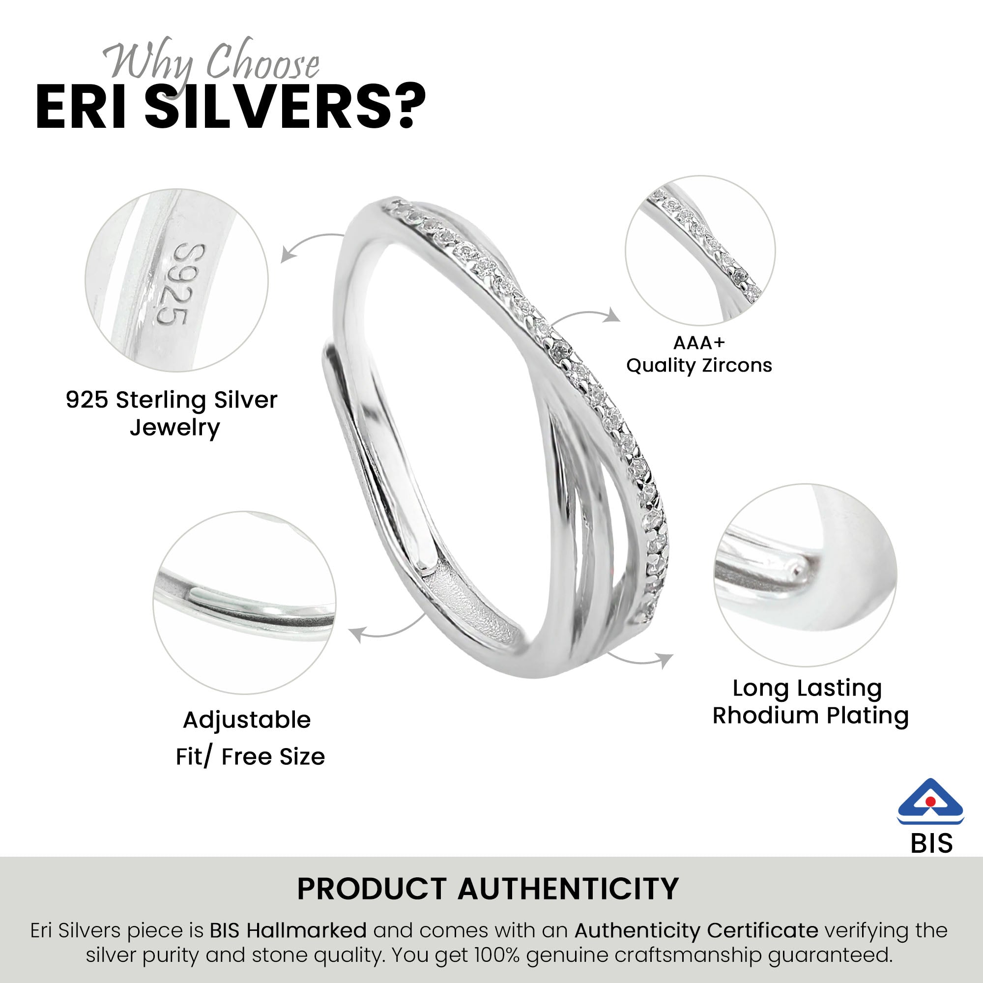 ✦ Made from high-quality silver, this ring features an adjustable band that can be resized to fit any finger.