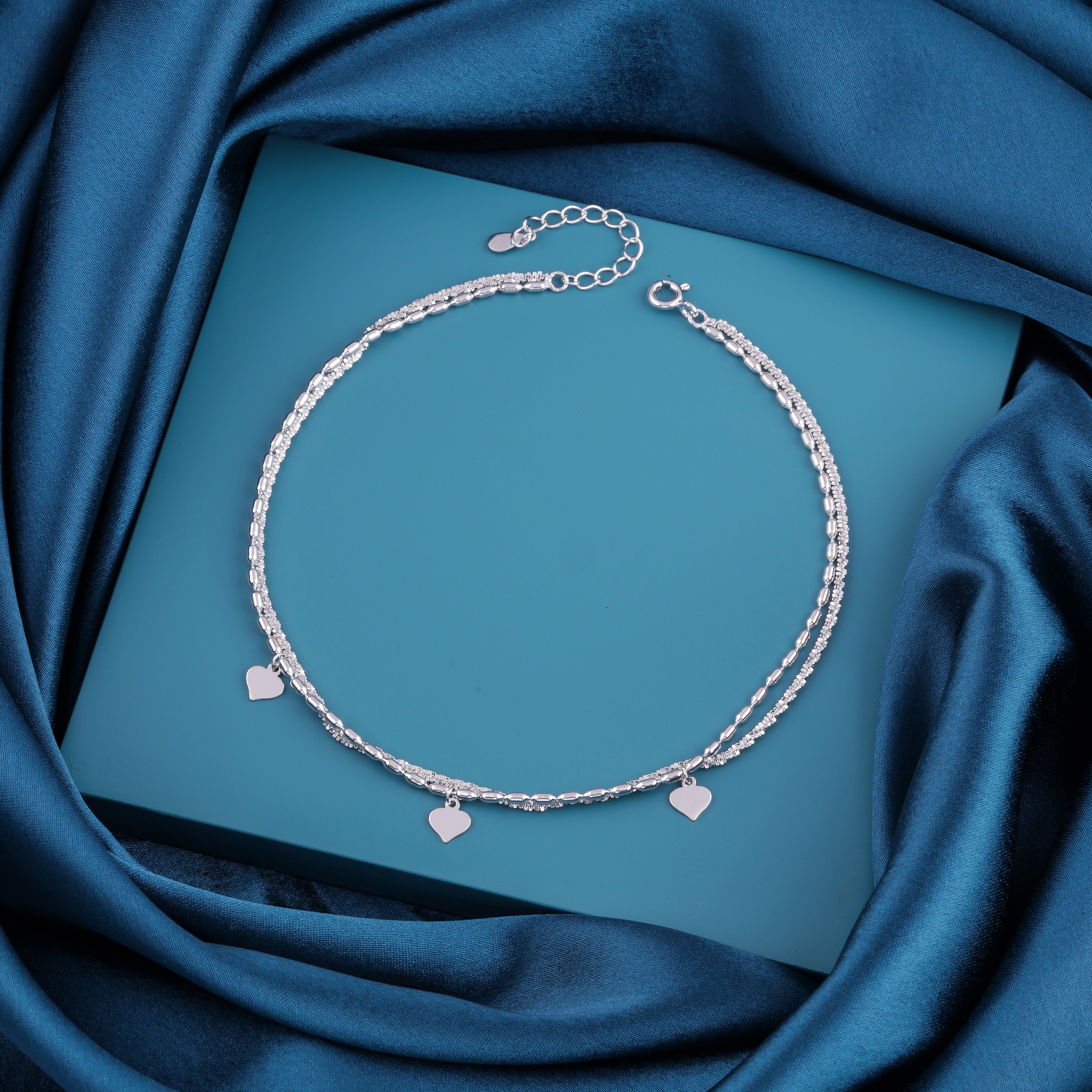 Featuring a dual-layer silver beaded chain with dainty heart charms, this anklet beautifully wraps around your ankle with a graceful shimmer.