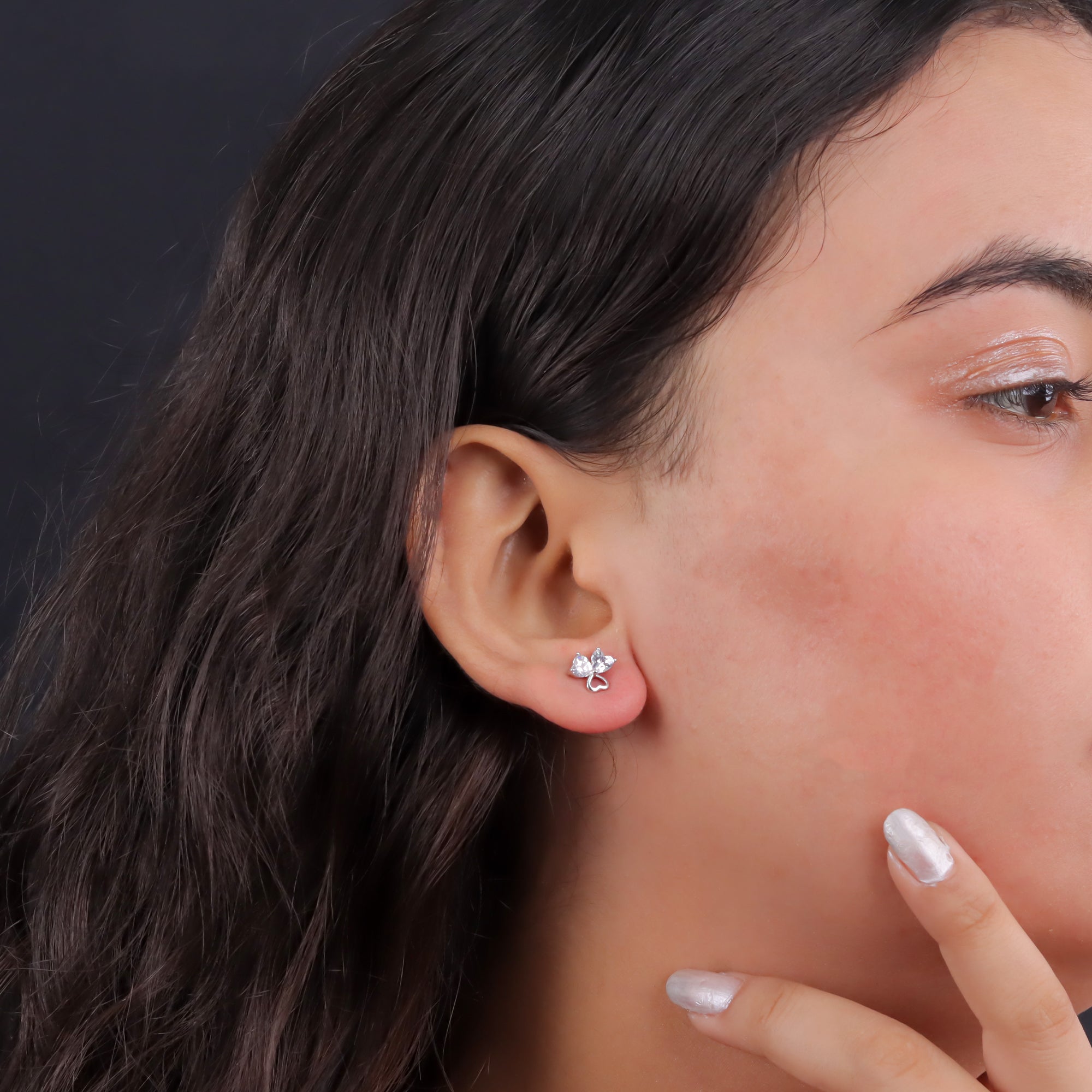 Crafted from BIS Hallmarked 925 Sterling Silver, these earrings feature a delicate floral motif adorned with AAA+ Grade Cubic Zirconia stones that shine with diamond-like brilliance.