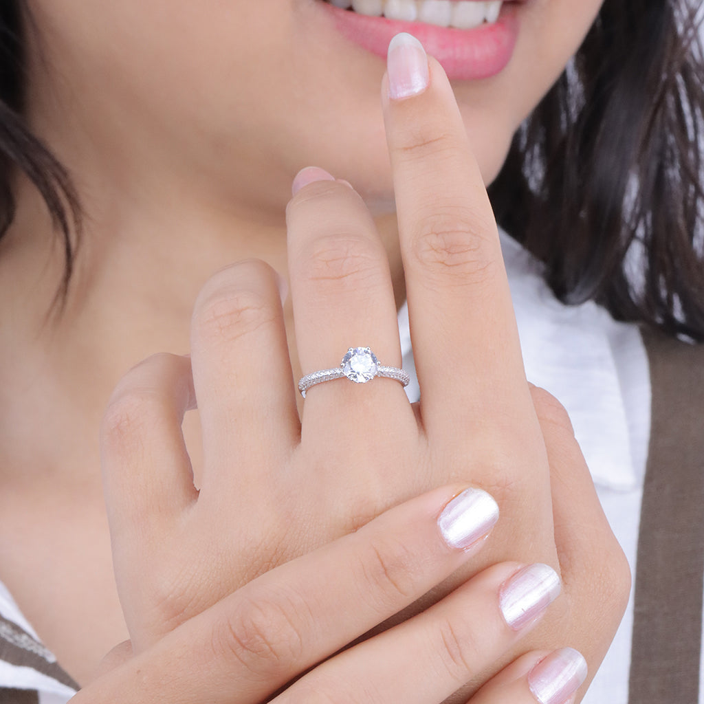 Silver Solitaire Diamond CZ Ring for Women