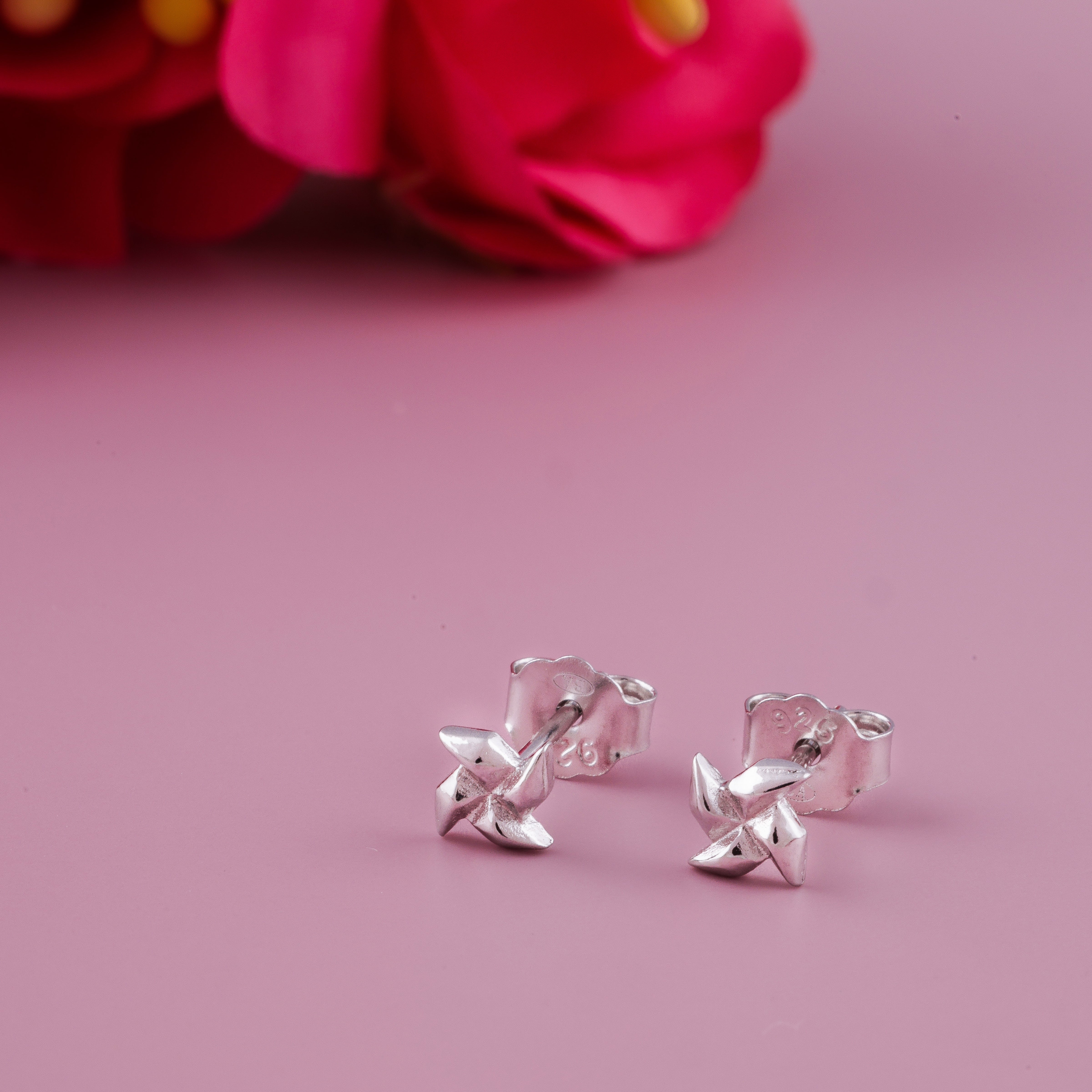 Expertly handcrafted from BIS Hallmarked 92.5 sterling silver, these charming earrings feature a mini pinwheel-inspired design that captures the joy of motion and lighthearted charm.